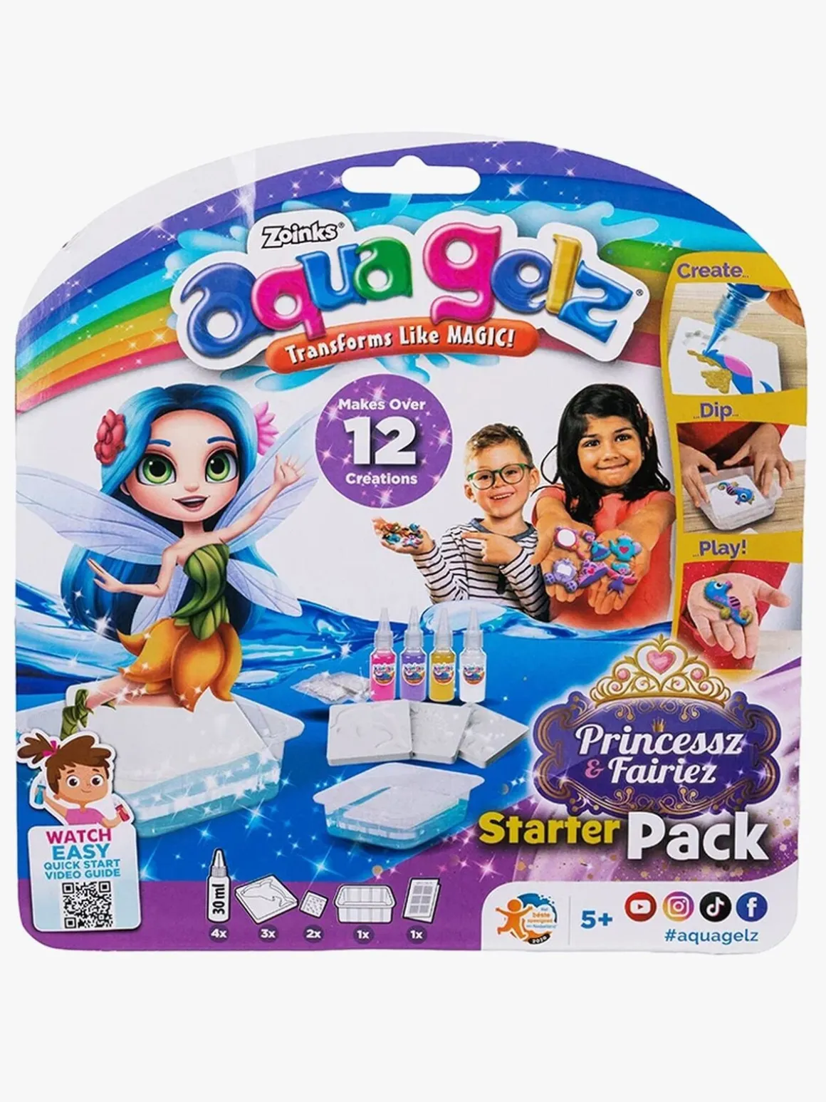 – Indeholder: 4 farver, 2 vandtilsætningsstoffer, 3 forme med prinsessetema, 1 vandbeholder, 1 brugsvejledning.