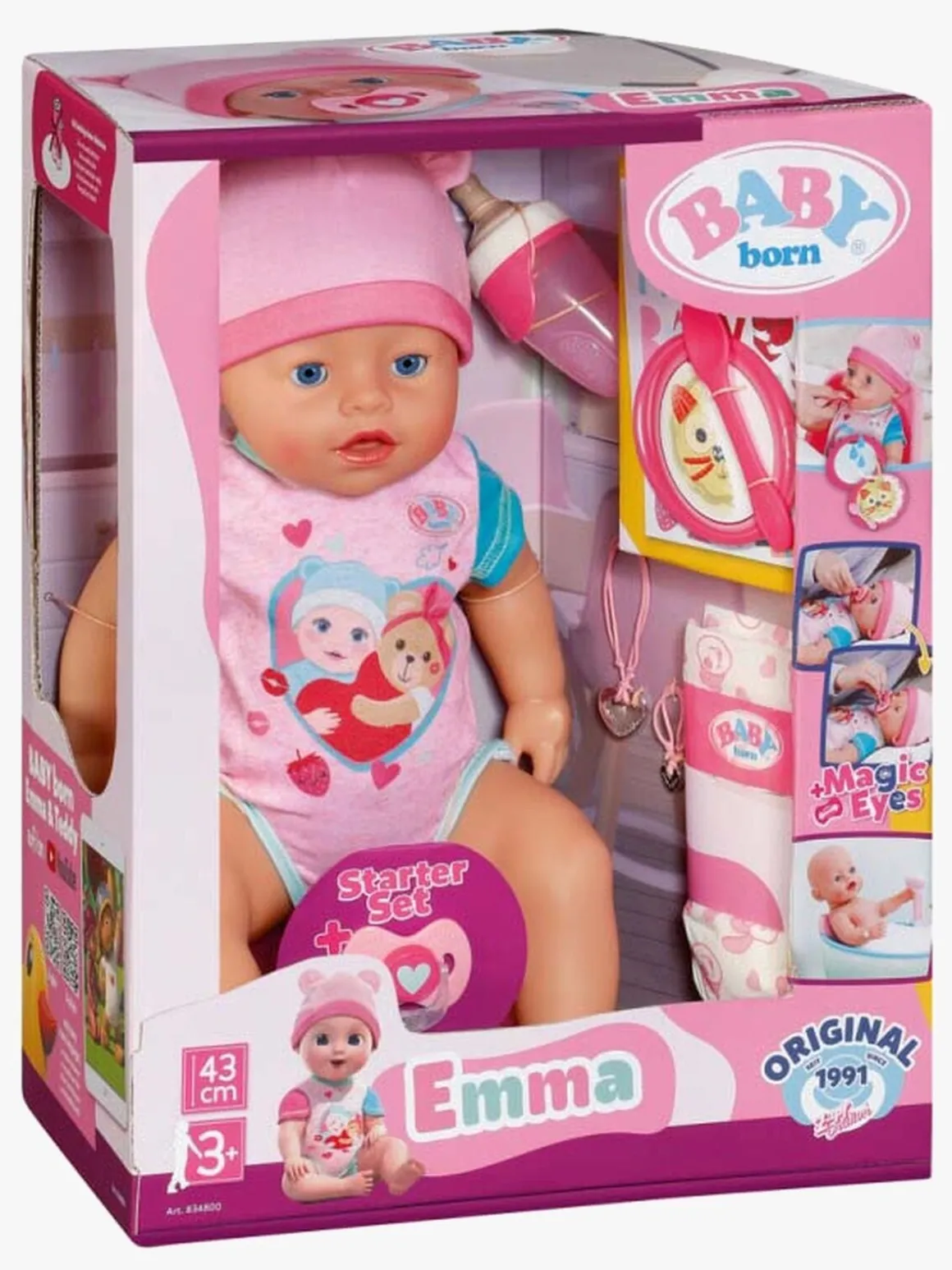 – Indeholder: 1 dukke, 1 potte, 1 ble, 1 tallerken, 1 ske, 1 sutteflaske, 1 sut, 2 venskabsarmbånd, 1 fødselsattest.