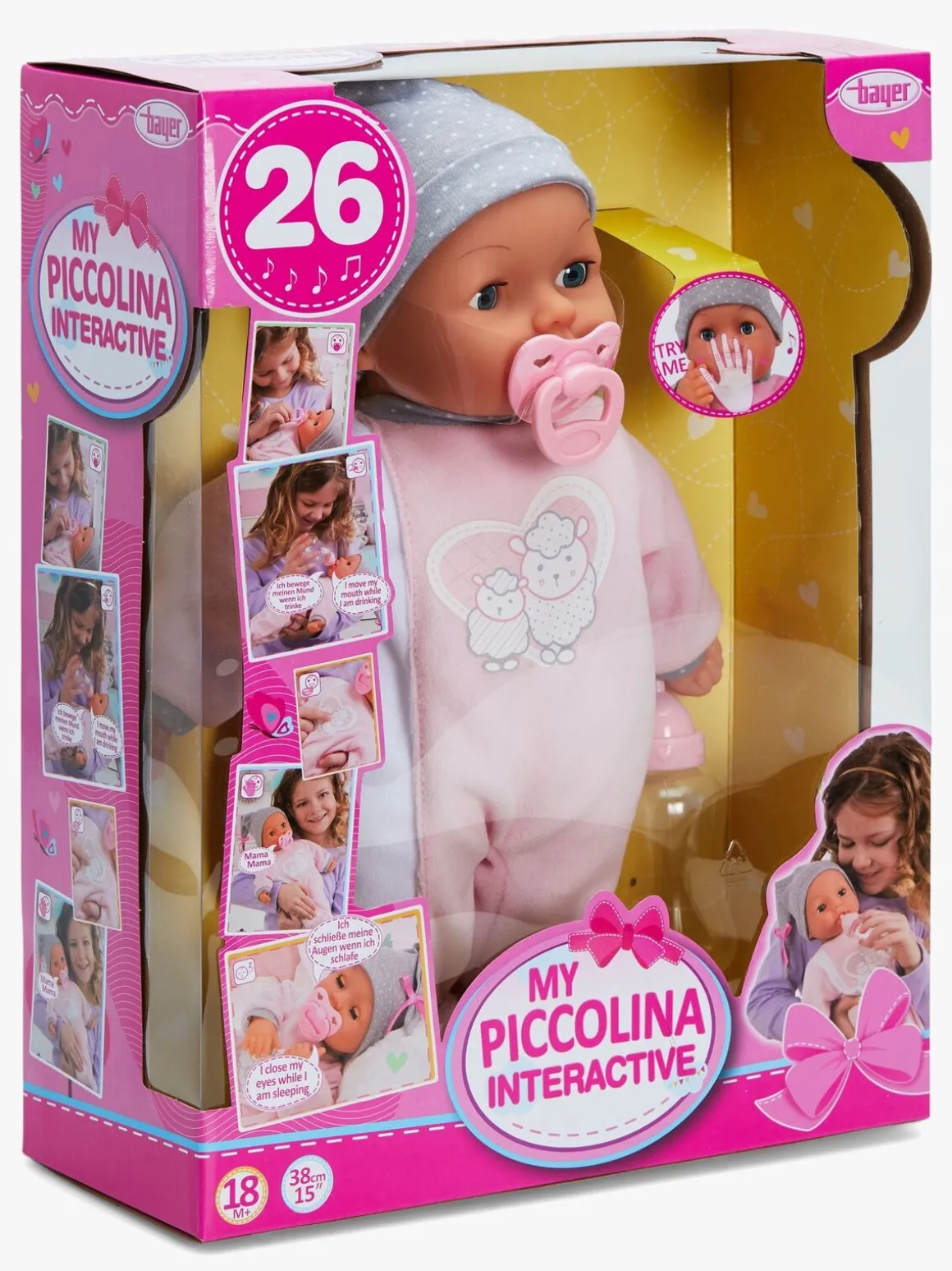 Bayer Design Piccolina Interaktiv Dukke 38 cm, Lyserødt Lam