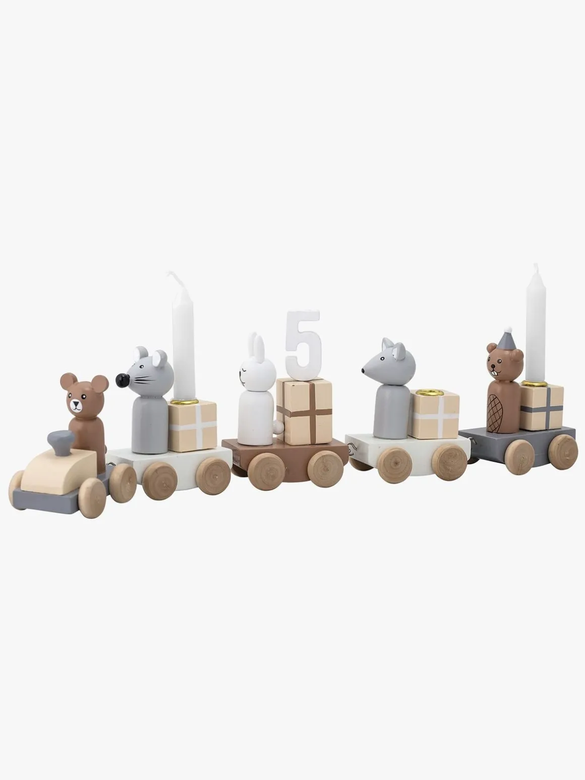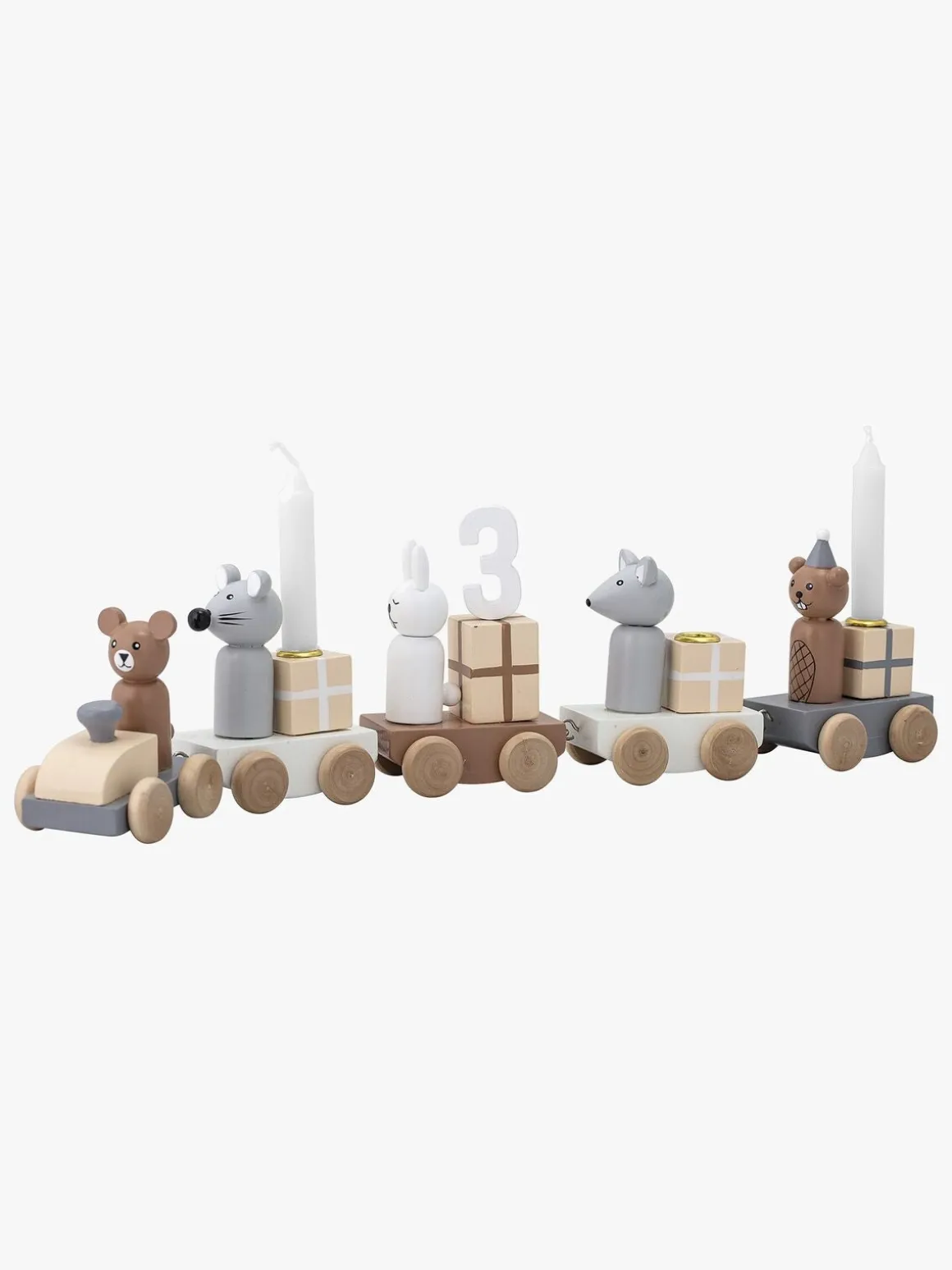 – Indhold: 1 lokomotiv, 4 vogne, to bjørne, to mus, en kanin og tallene 1-9.