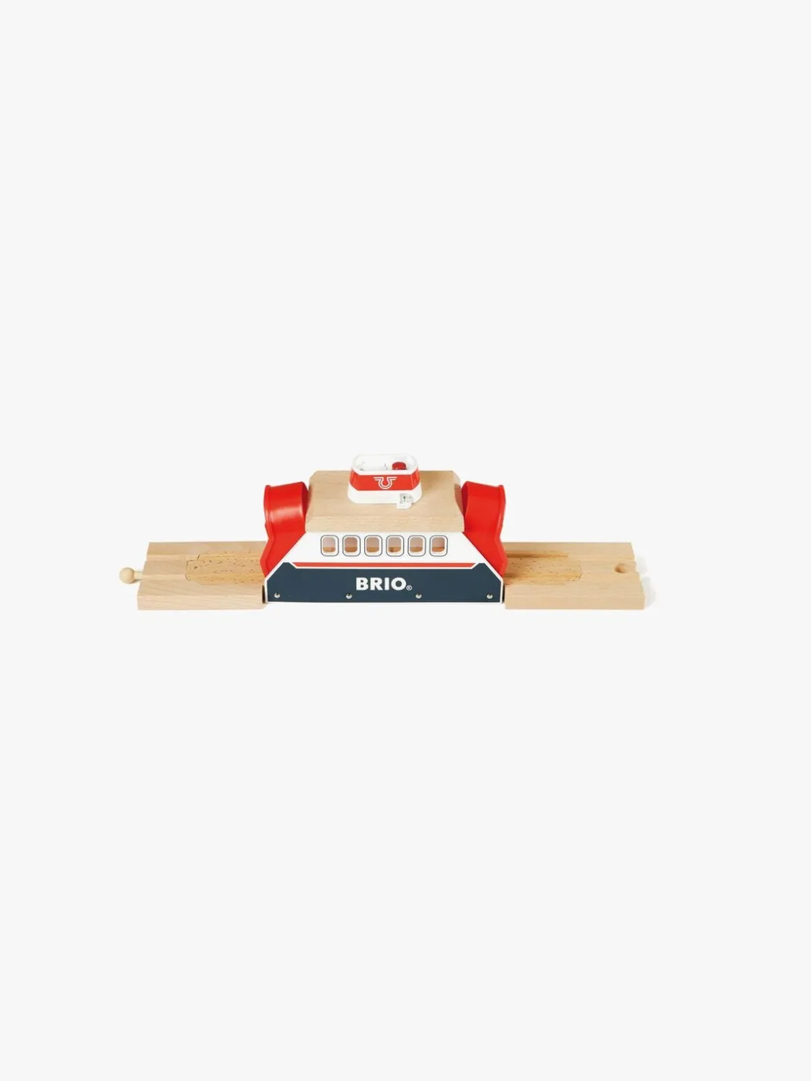 Færgen har lyd og lys, som aktiveres med et enkelt tryk på en knap. Med de to medfølgende af- og påstigningsspor, åbnes færgens port når den lægger til.