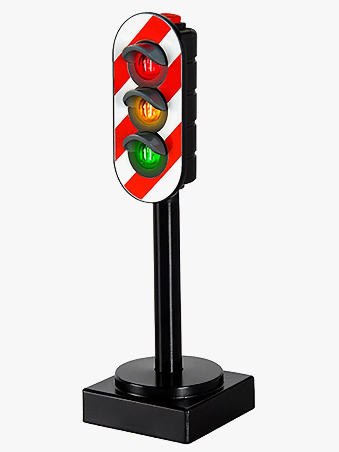 Et smart lyssignal fra BRIO, der hjælper dig med at holde styr på sikkerheden på togbanen. Lyssignalet giver dig mulighed for at kontrollere at alle tog ved hvornår de skal stoppe for anden trafik. Tryk på knappen for at aktivere lyssignalet – rødt betyder stop, gult betyder vent, og grønt betyder at det er tid at tøffe afsted på nye eventyr!