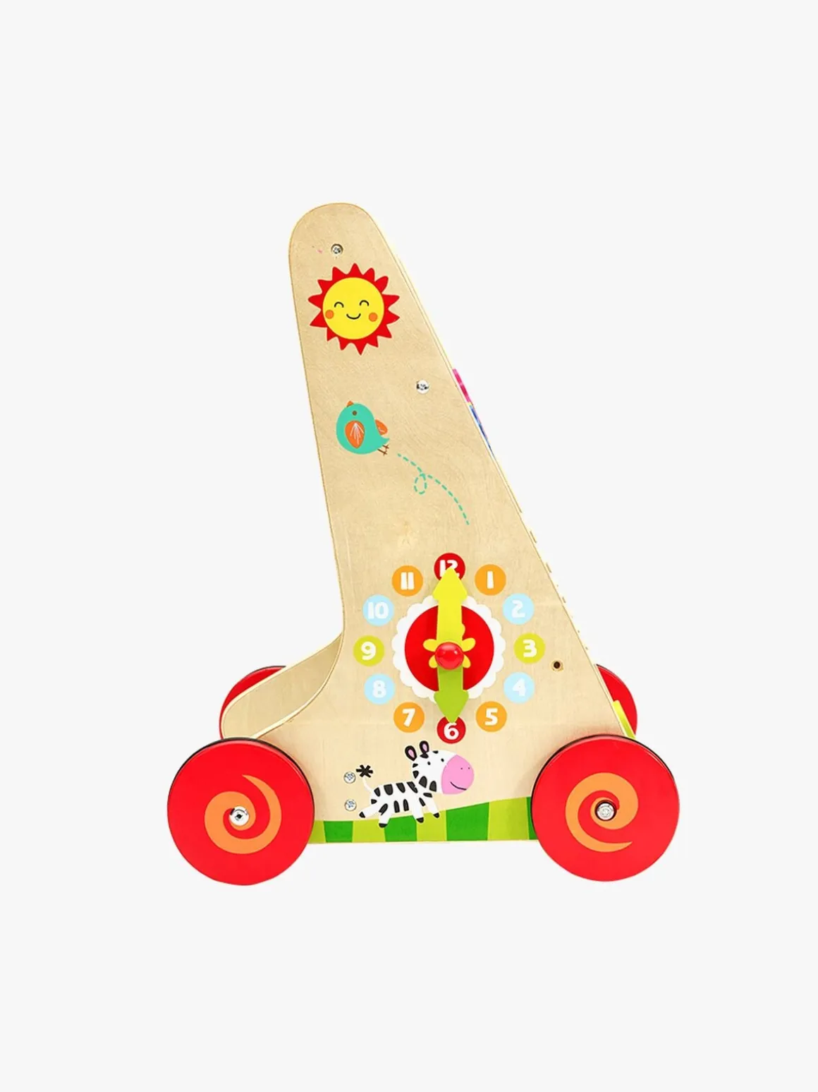– Inkl puttekasse, et puslespil, xylofon og et tandhjul.
