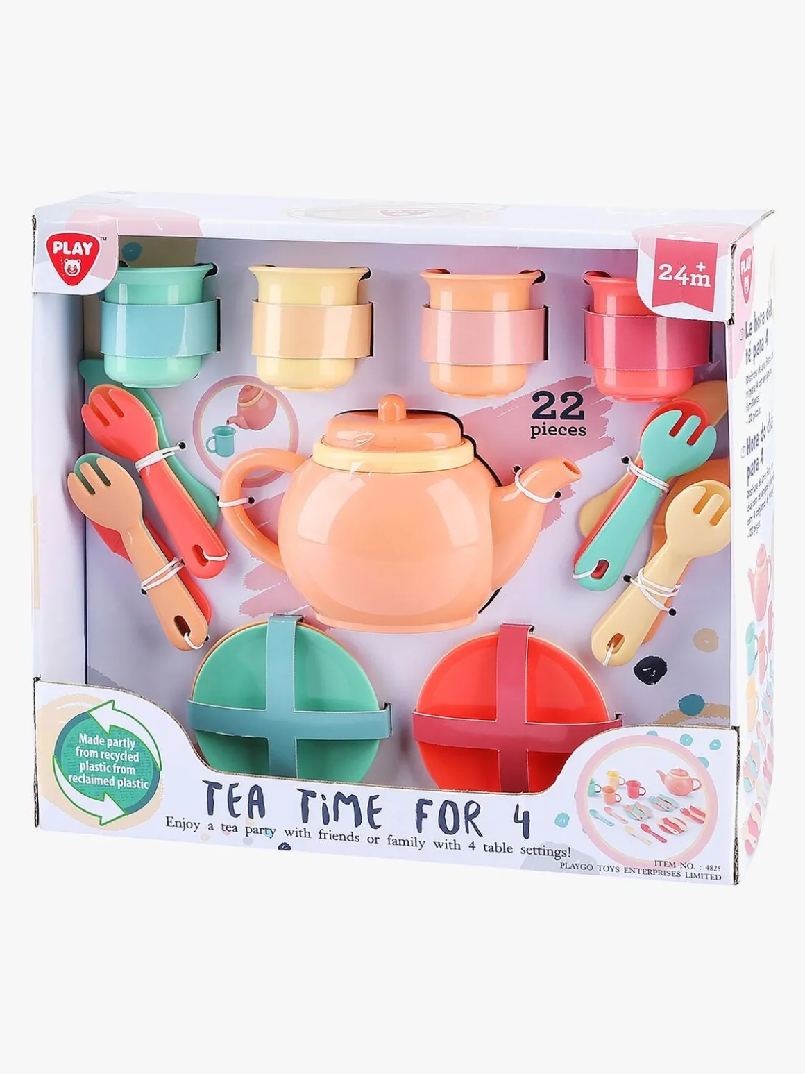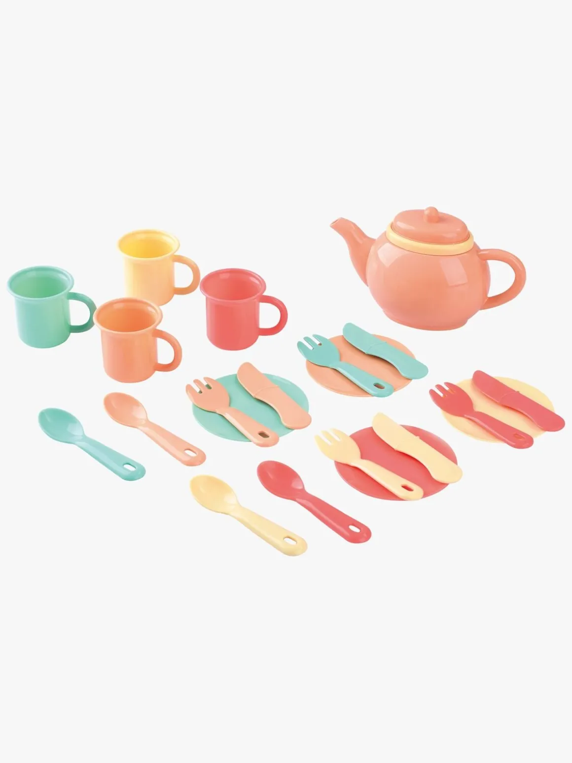 – Indeholder: 1 tepotte, 4 tekopper, 4 små tallerkener, 4 skeer, 4 gafler, 4 knive.