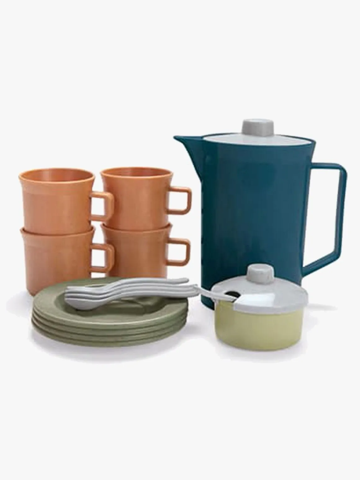 – Indeholder: 1 kaffekande, 1 sukkerskål, 4 kaffekopper, 4 små tallerkener, 5 skeer.