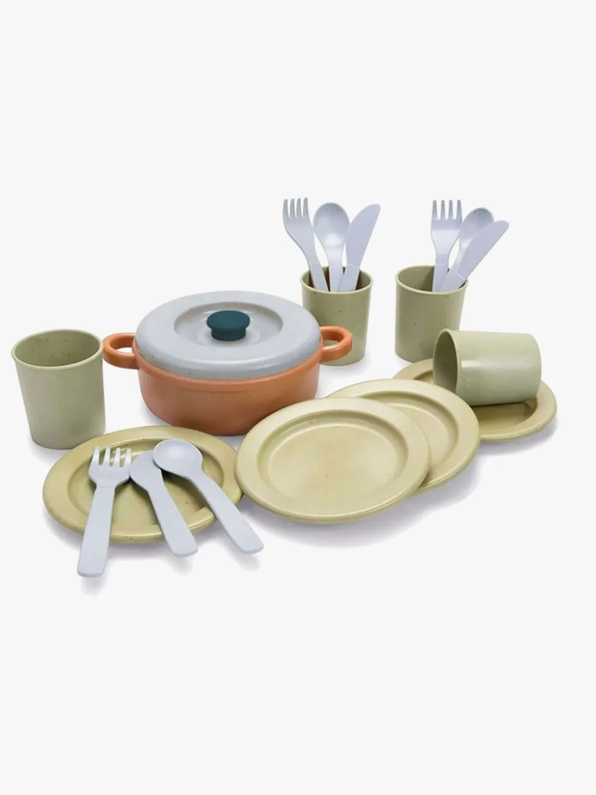 – Indeholder: 1 gryde, 4 tallerkener, 4 glas, 4 skeer, 4 gafler, 4 knive.
