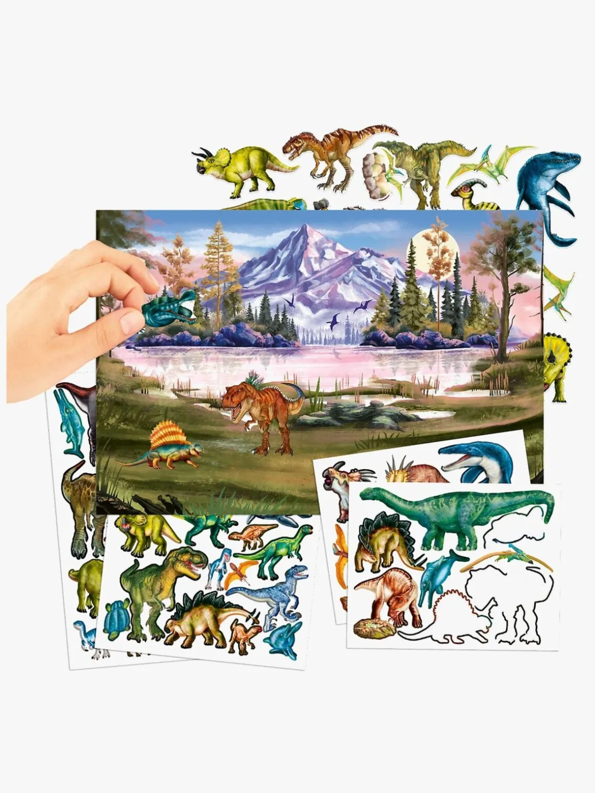– Brug klistermærkerne til at fylde landskaberne med seje dinosaurer.