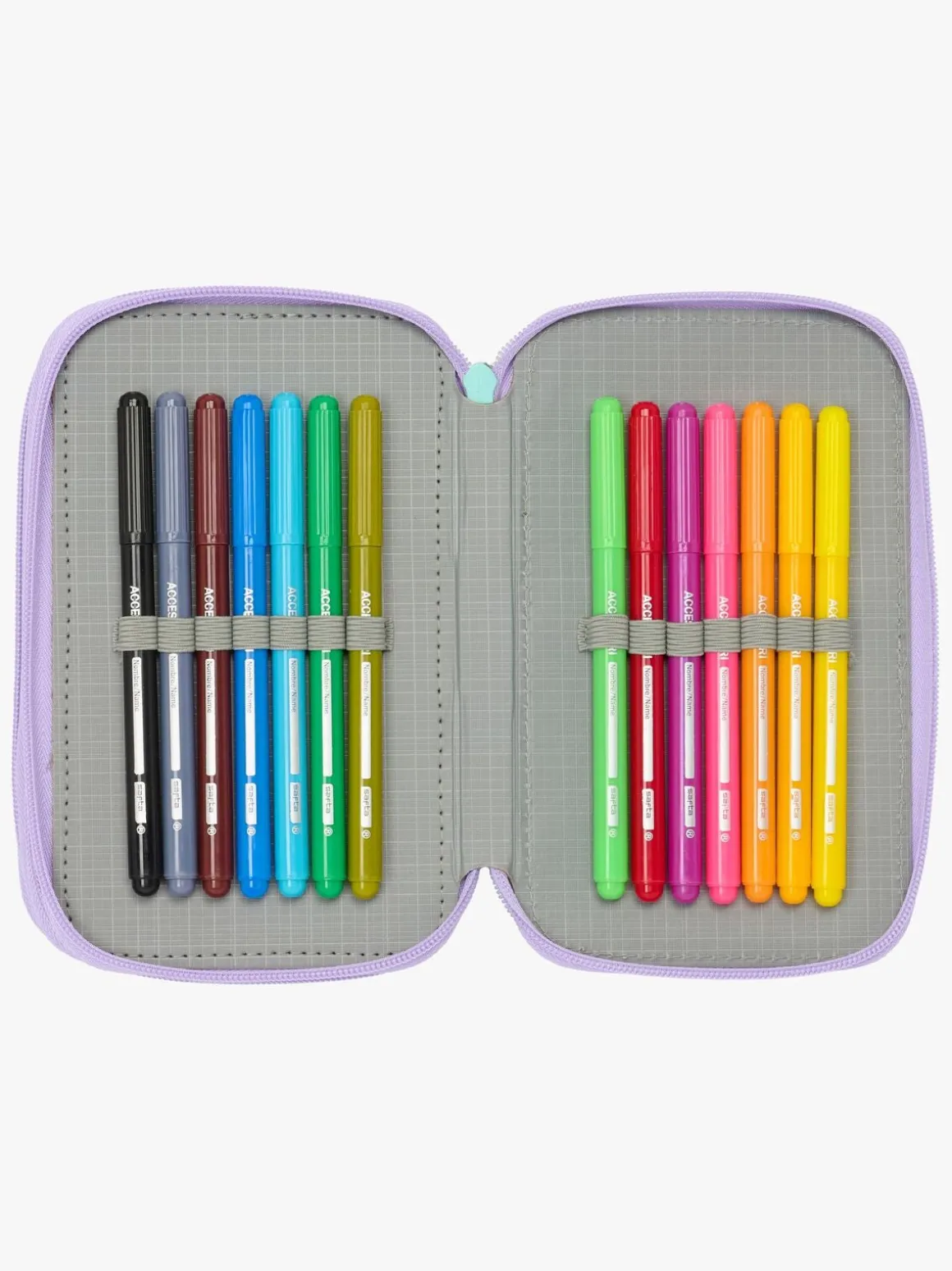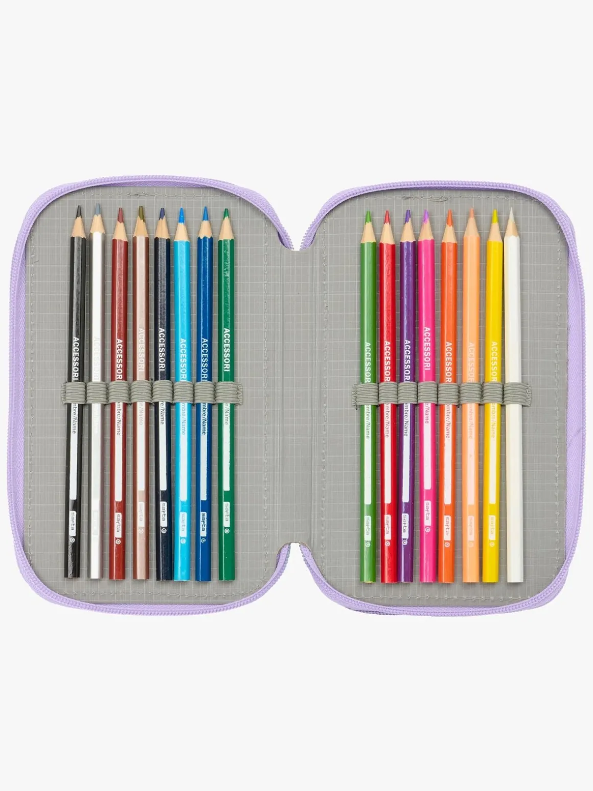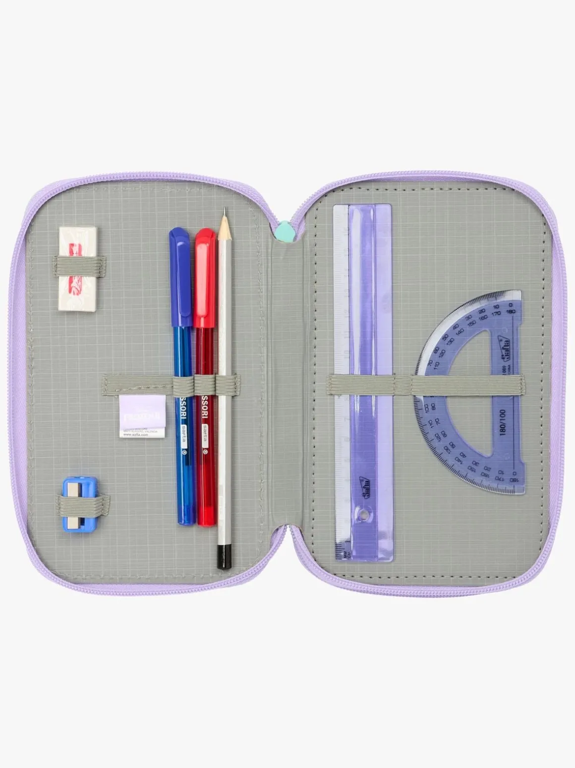 – Indeholder: 1 penalhus, 1 viskelæder, 1 blyant, 2 kuglepenne, 1 blyantspidser, 2 linealer, 16 farveblyanter, 14 tusser.