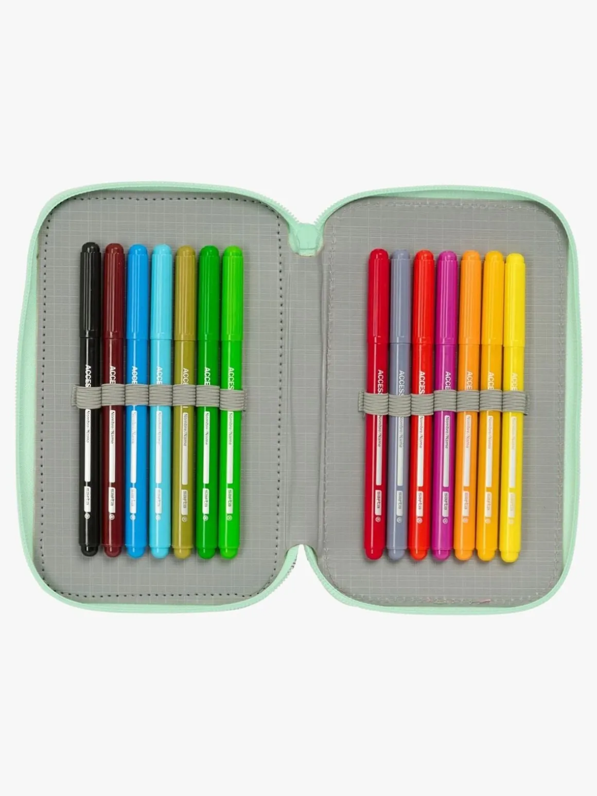 – Indeholder: 1 penalhus, 16 farveblyanter, 14 tusser, 1 kuglepen, 1 blyant, 1 viskelæder, 1 blyantspidser, 2 linealer.