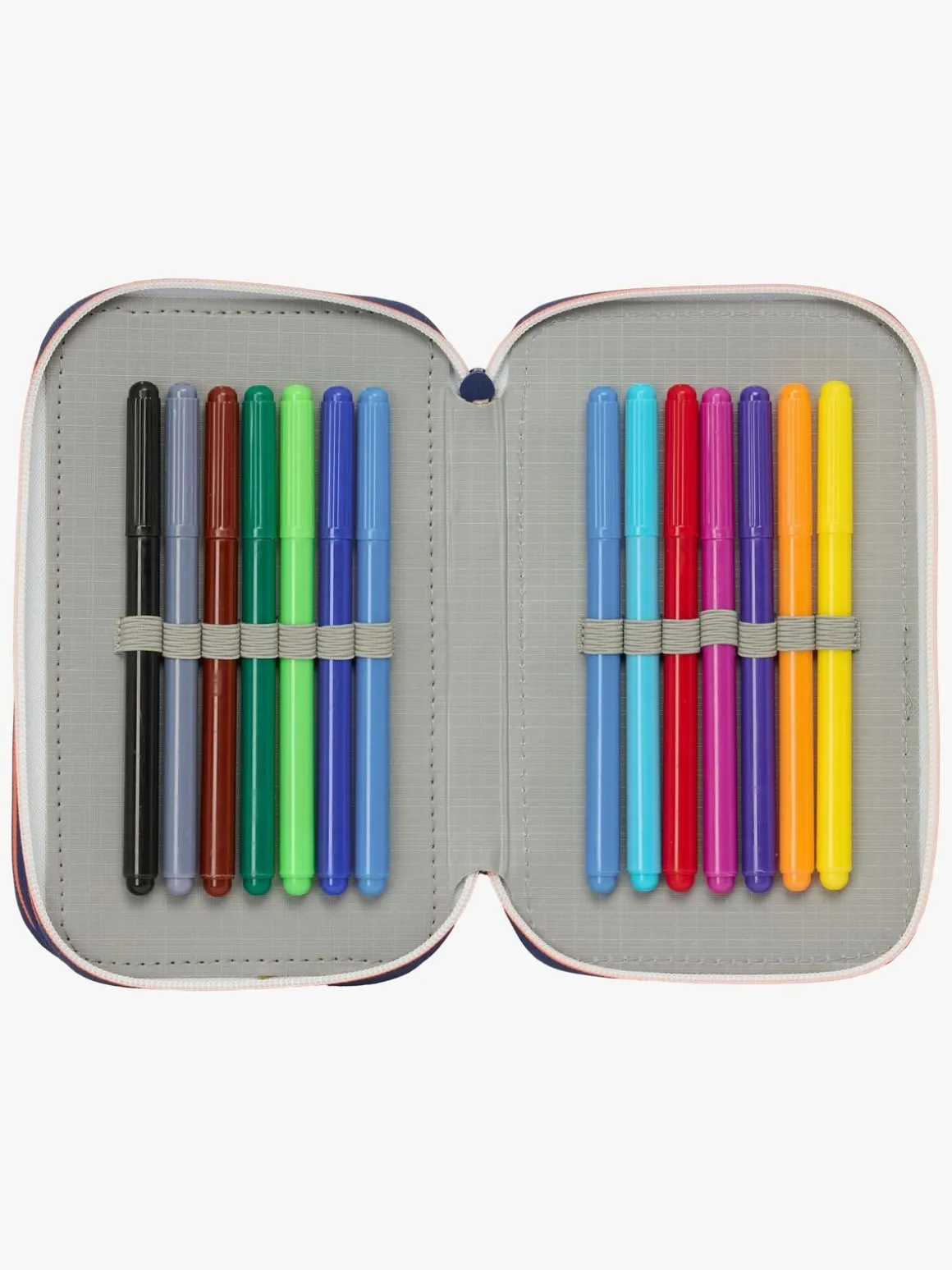 – Indeholder: 1 penalhus, 1 viskelæder, 1 blyant, 2 kuglepenne, 1 blyantspidser, 2 linealer, 16 farveblyanter, 14 tusser.