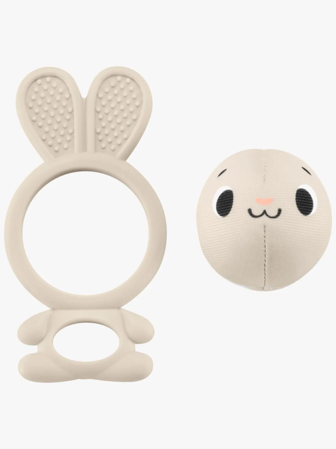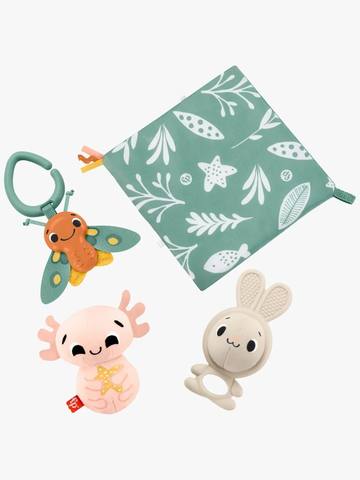 – Indeholder: 1 bidelegetøj, 1 rangle, 1 bamse, 1 knitrestof.