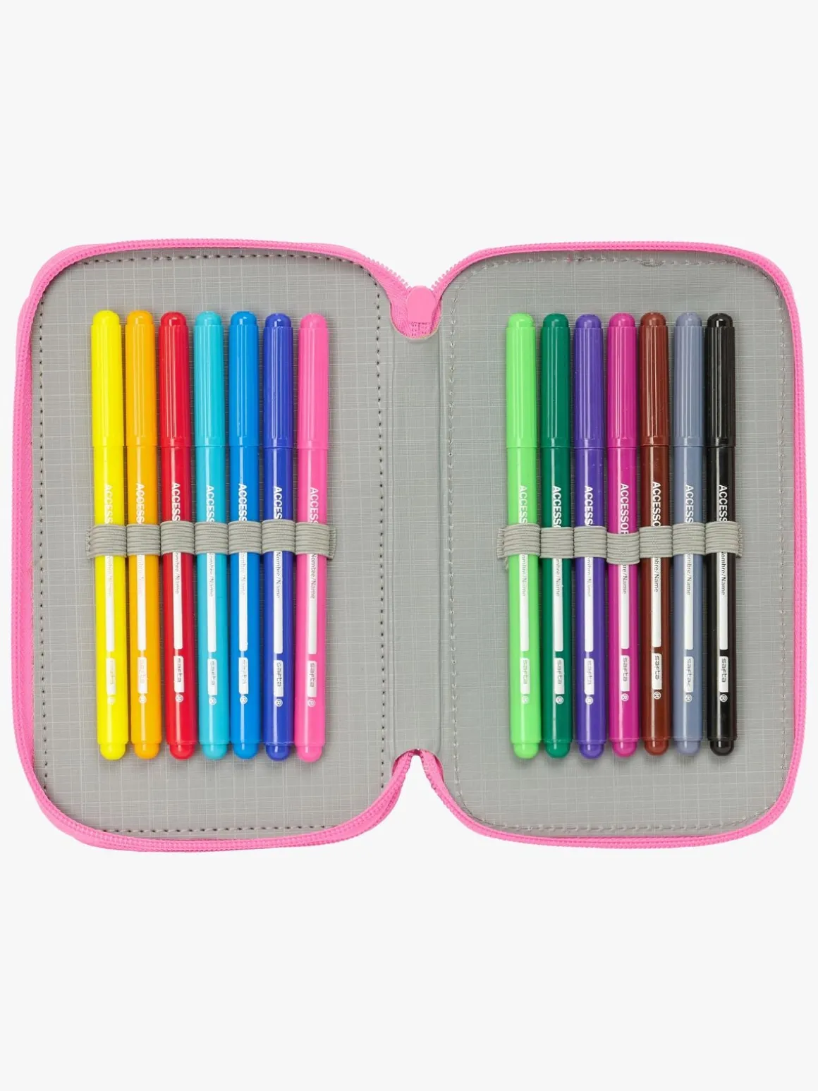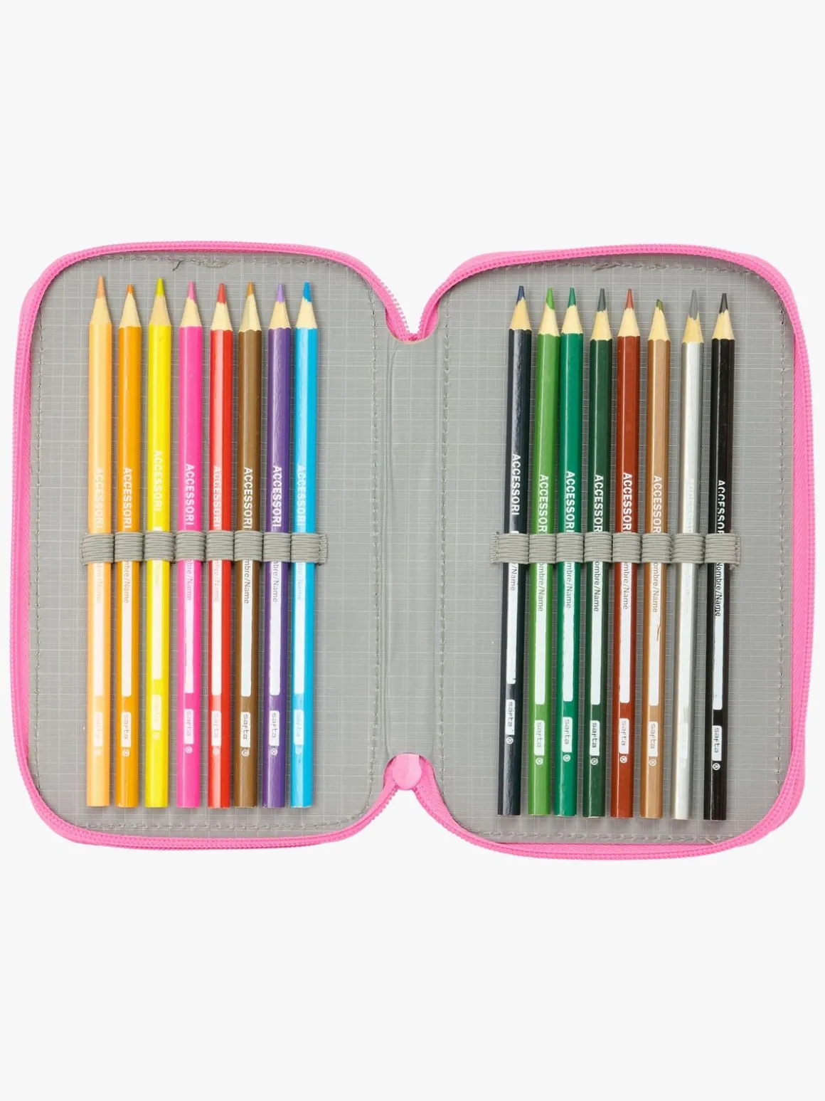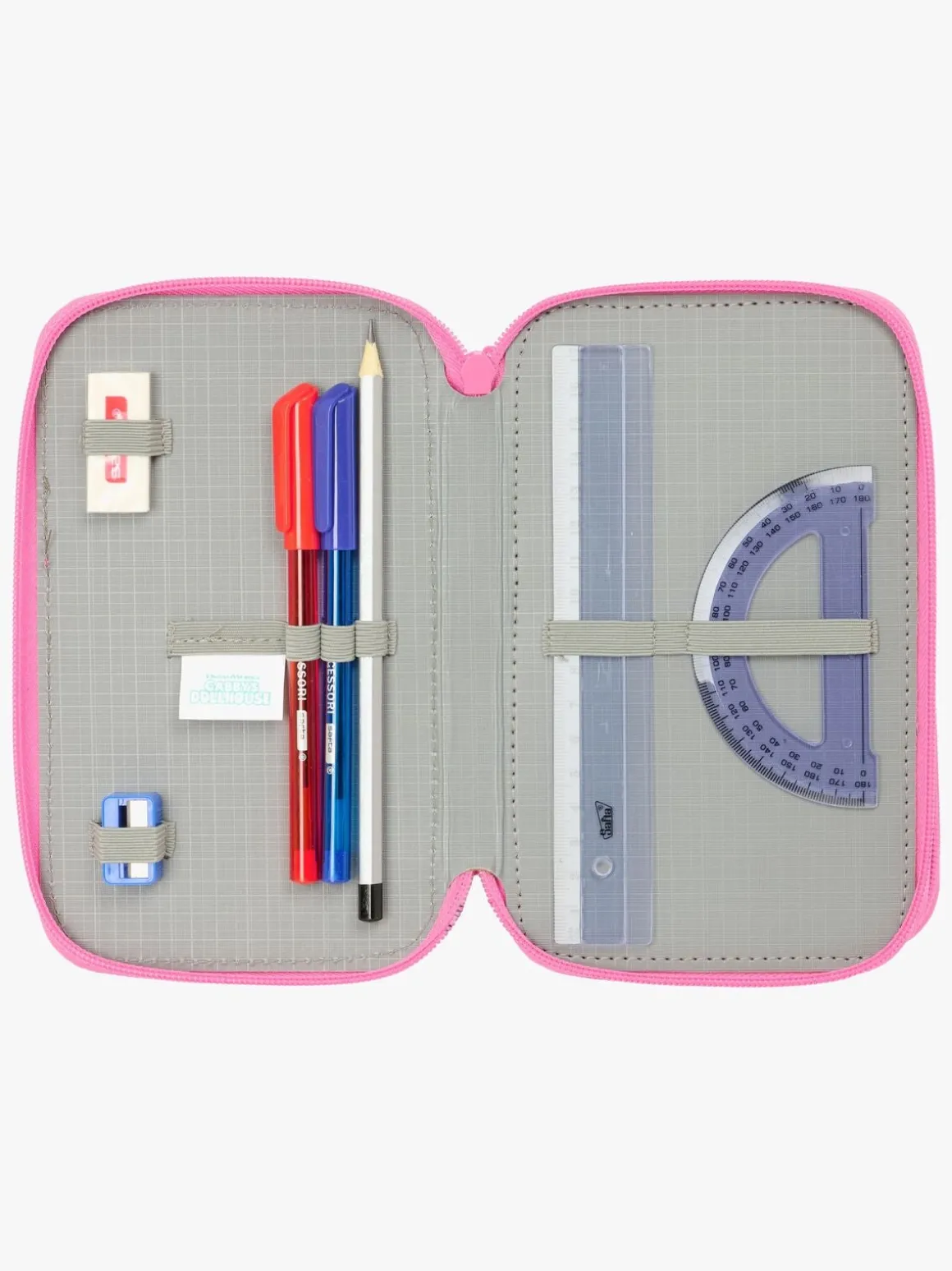 – Indeholder: 1 penalhus, 1 viskelæder, 1 blyant, 2 kuglepenne, 1 blyantspidser, 2 linealer, 16 farveblyanter, 14 tusser.