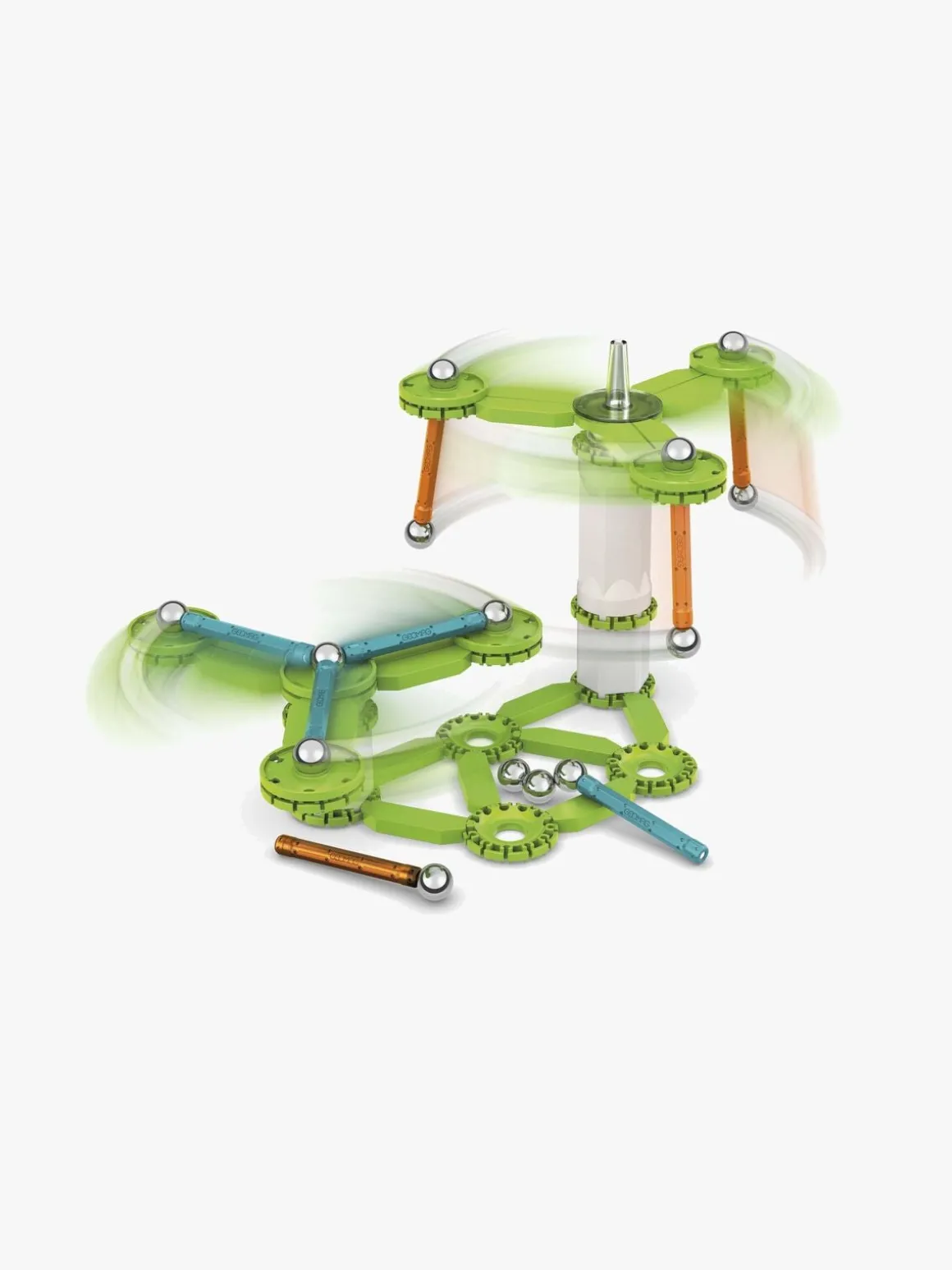 – Byg en konstruktion af tre svinghjul, og se hvordan de roterer ved hjælp af magnetisk kraft.