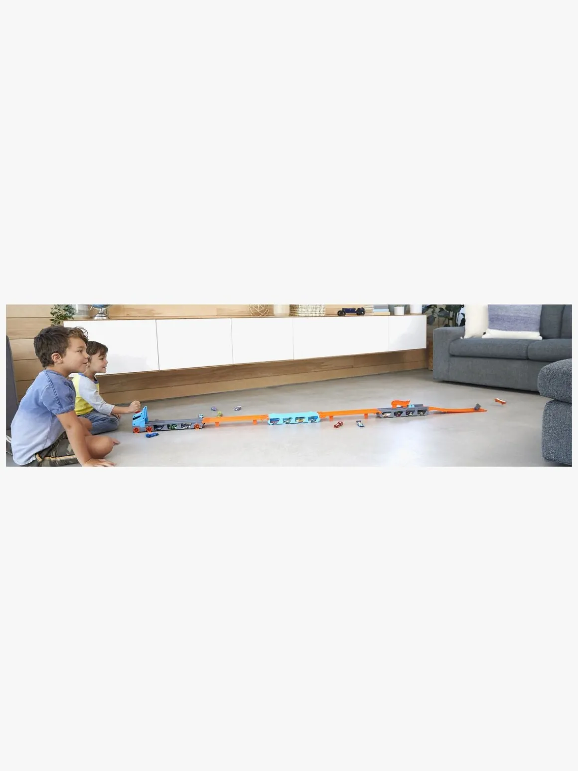 Tre Hot Wheels-biler medfølger.