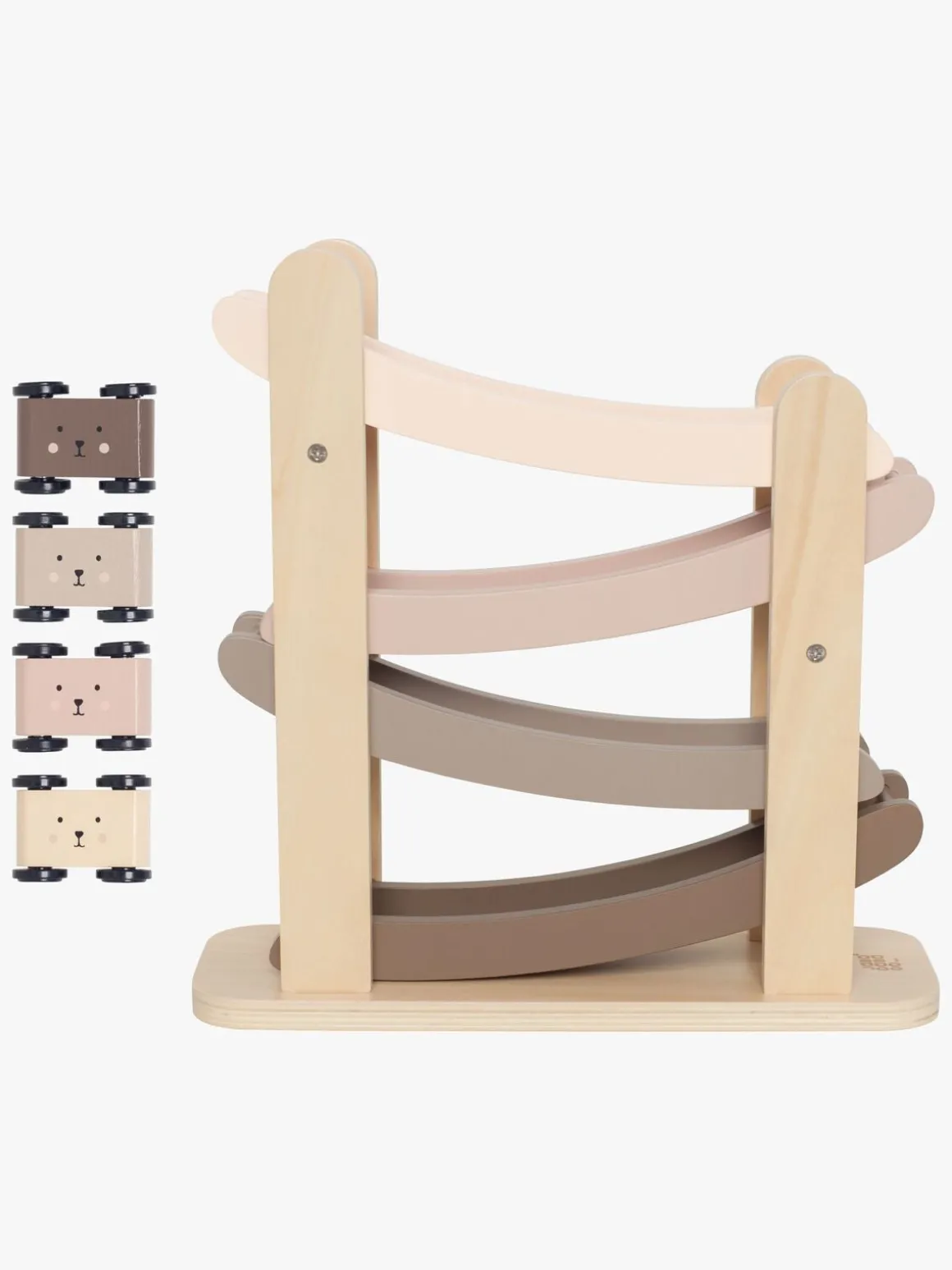 – Placer bilerne øverst, og se dem køre og flippe ned ad racerbanen.