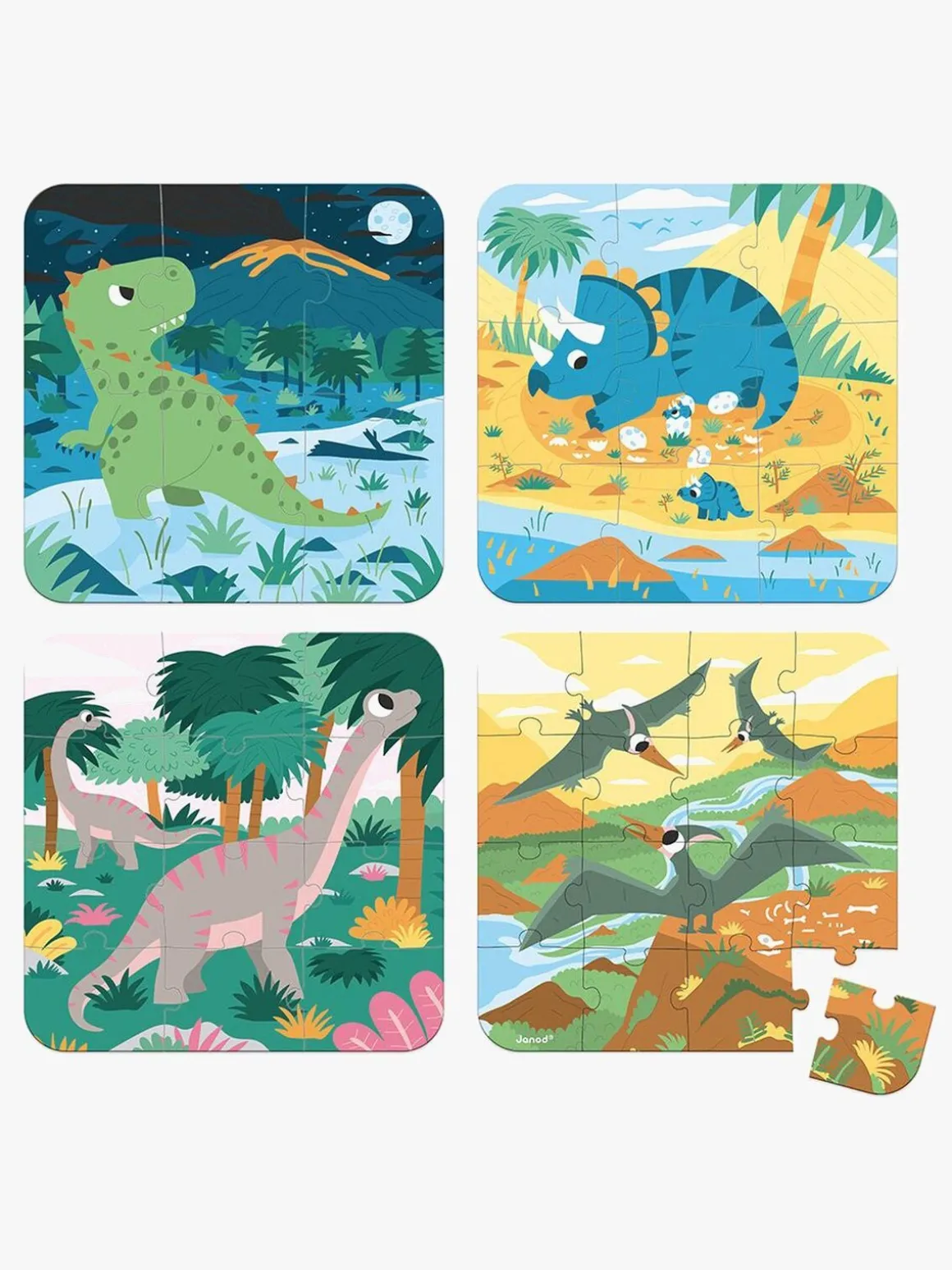– 4 puslespil, der hhv. består af 6, 9, 12 og 16 brikker.
