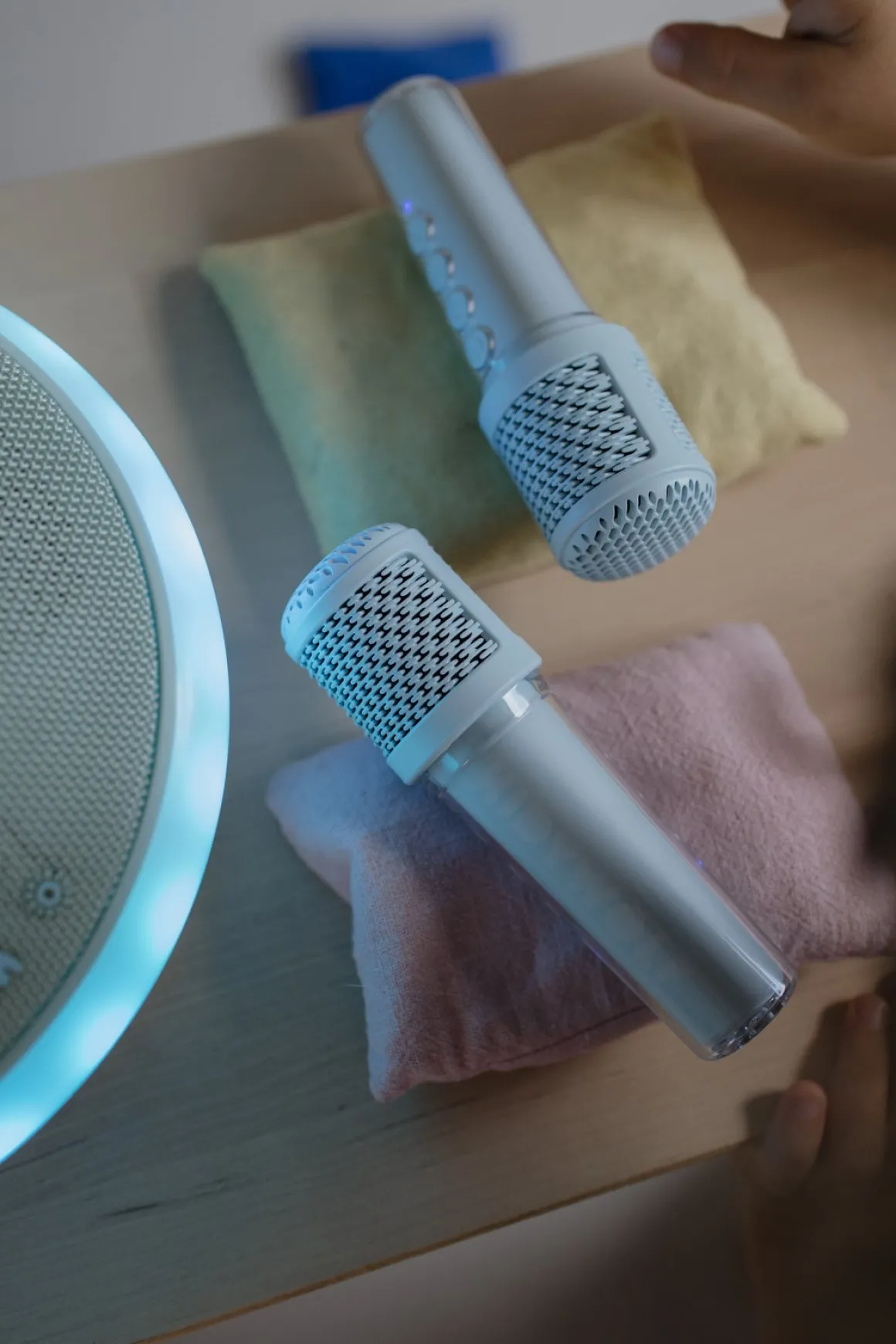 – 2 trådløse karaokemikrofoner.
