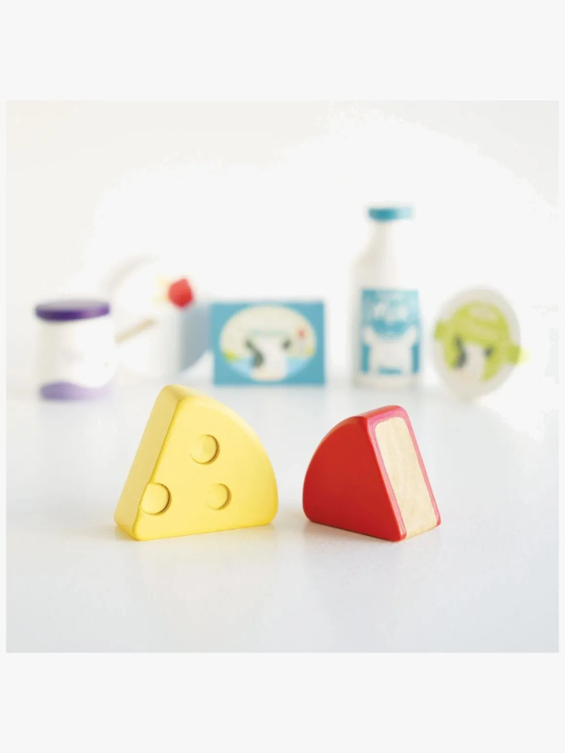 – Indeholder: 1 mælkekarton, 1 yoghurt, 1 fløde, 1 smør, 3 oste.