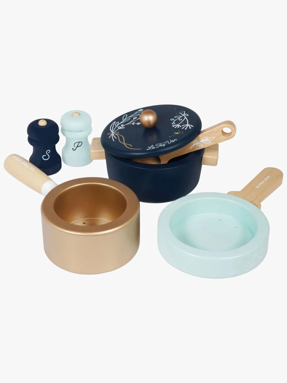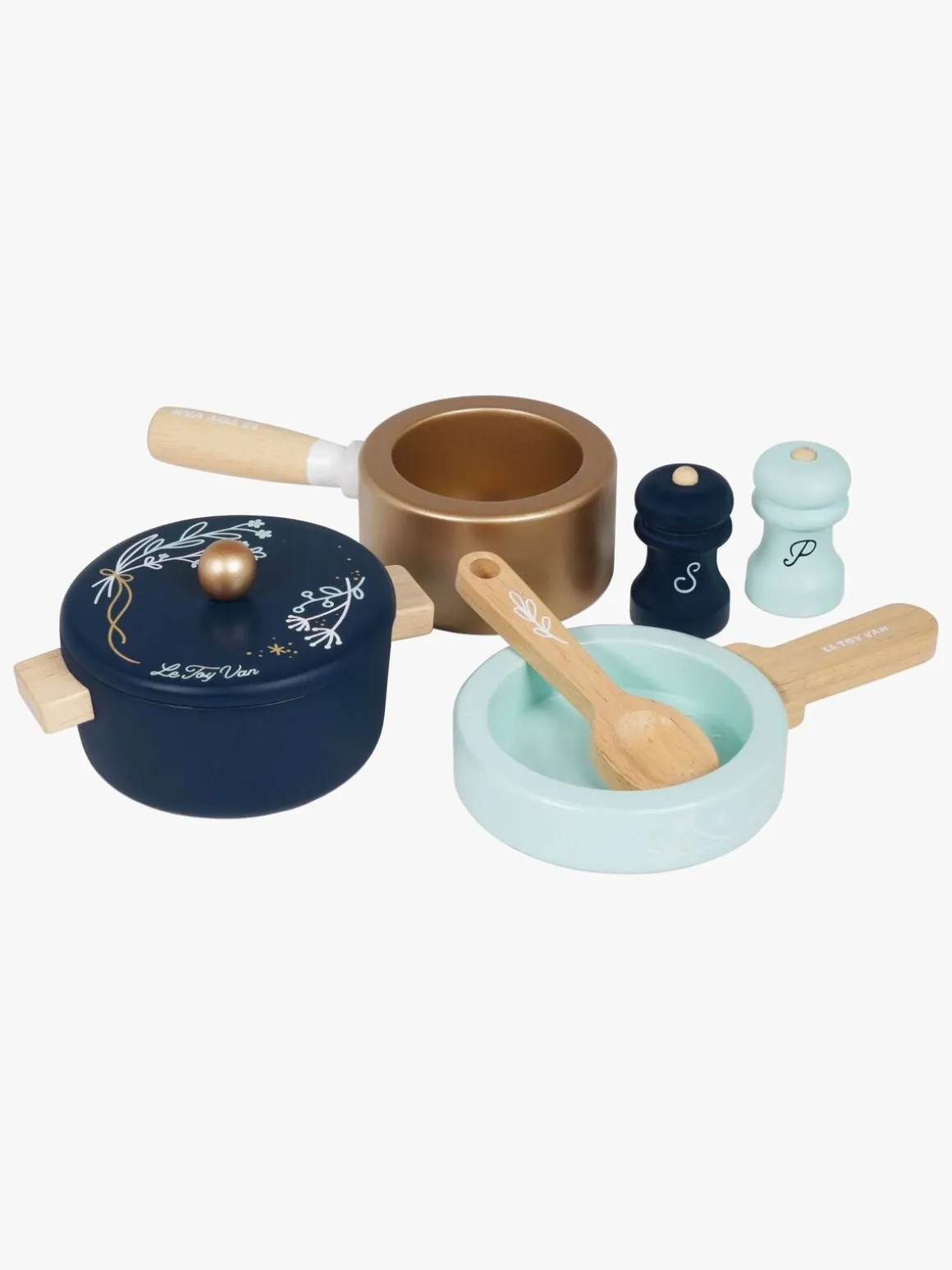 – Indeholder: 1 gryde, 2 stegepander, 1 ske, 1 salatskål, 1 peberkværn.