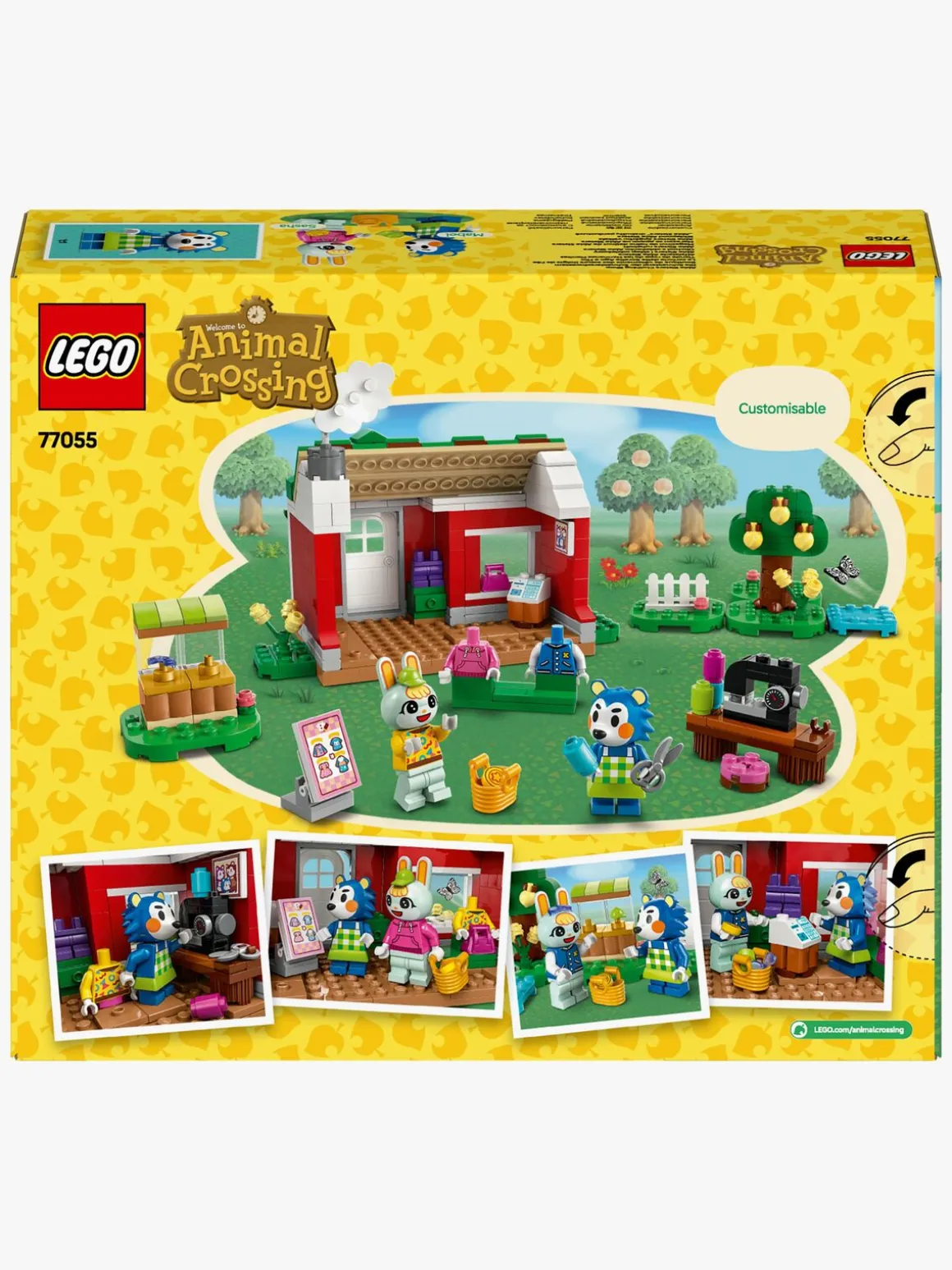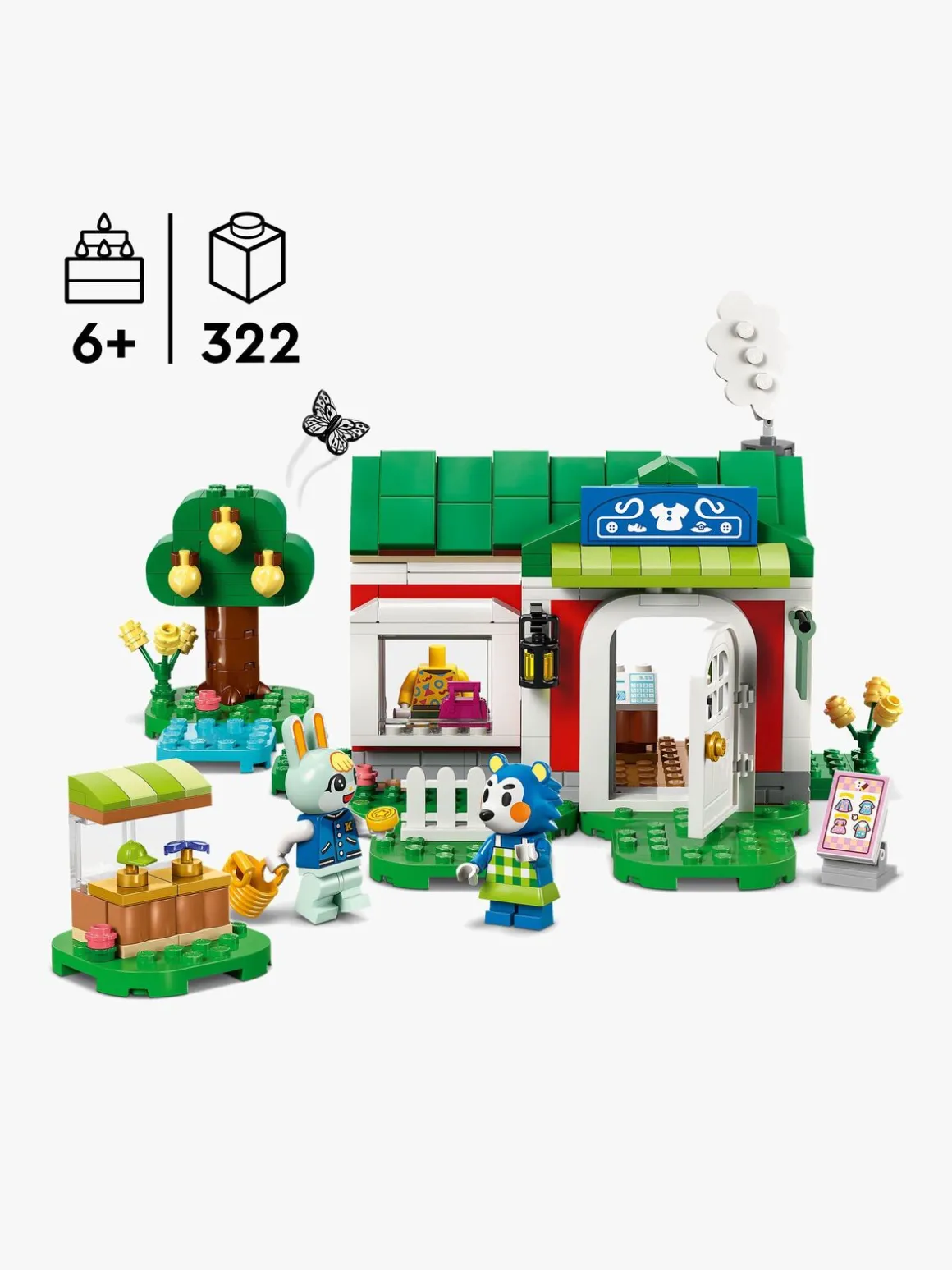 Børn kan adskille og samle byggepladerne igen for at ændre haven omkring tøjbutikken og endda skifte døren og taget ud med nogle fra andre LEGO Animal Crossing sæt sælges separat. Børn kan også få et nemt og intuitivt byggeeventyr med LEGO Builder appen, hvor de kan zoome ind på og dreje deres kreative legetøj i 3D og følge deres fremskridt.