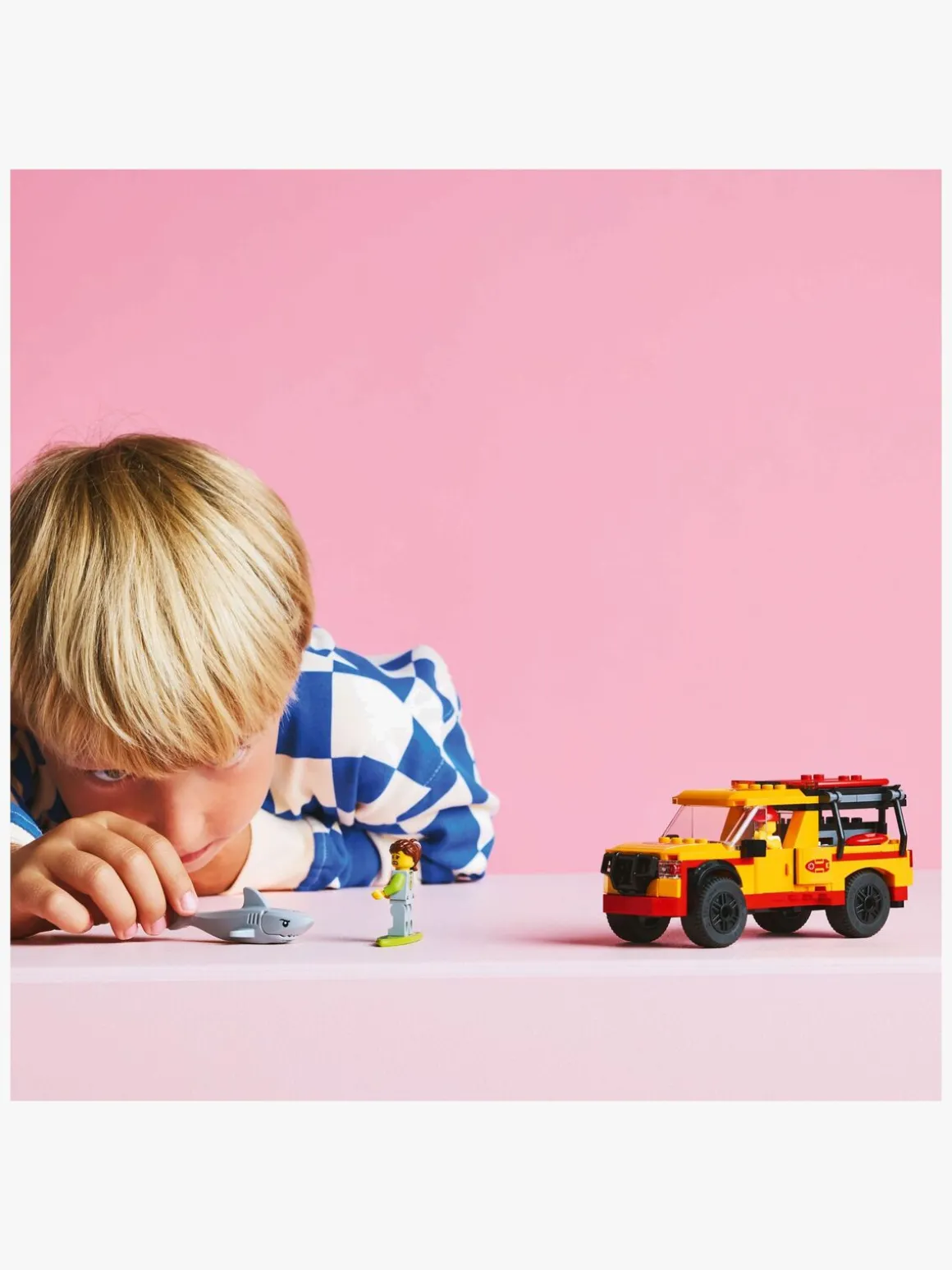 Byg-selv-sæt fra LEGO City Fantastiske fartøjer indeholder realistisk legetøj, der færdes til lands, til vands og i luften og giver kreativ leg uden grænser. Børn kan kombinere legetøjet af en livredderbil med andre samlesæt sælges separat fra LEGO City sortimentet og skabe flere spændende eventyr.