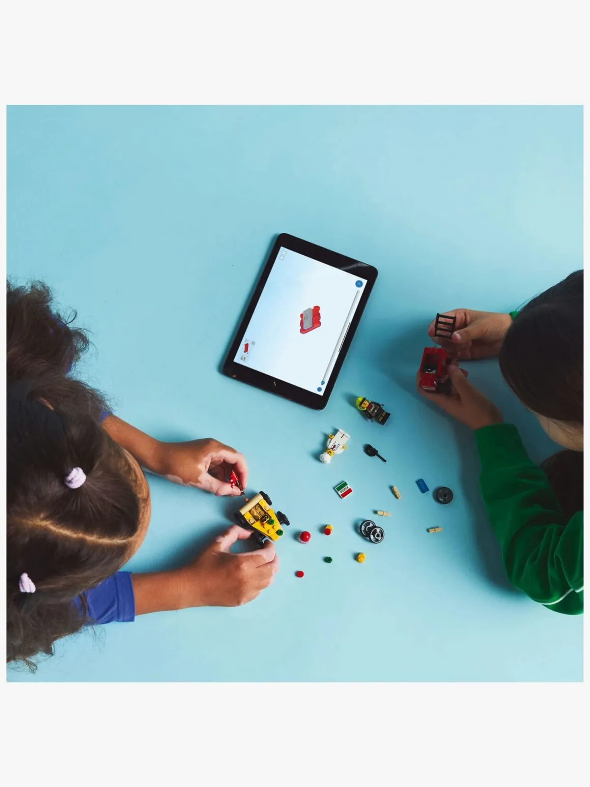 LEGO racerlegetøjet indeholder trykt trinvis byggevejledning. Børn kan også nyde et sjovt byggeeventyr i LEGO Builder appen, hvor de kan zoome ind på og dreje modellerne i 3D, mens de bygger, holde styr på, hvor langt de er kommet, og udforske og gemme andre legetøjssæt.