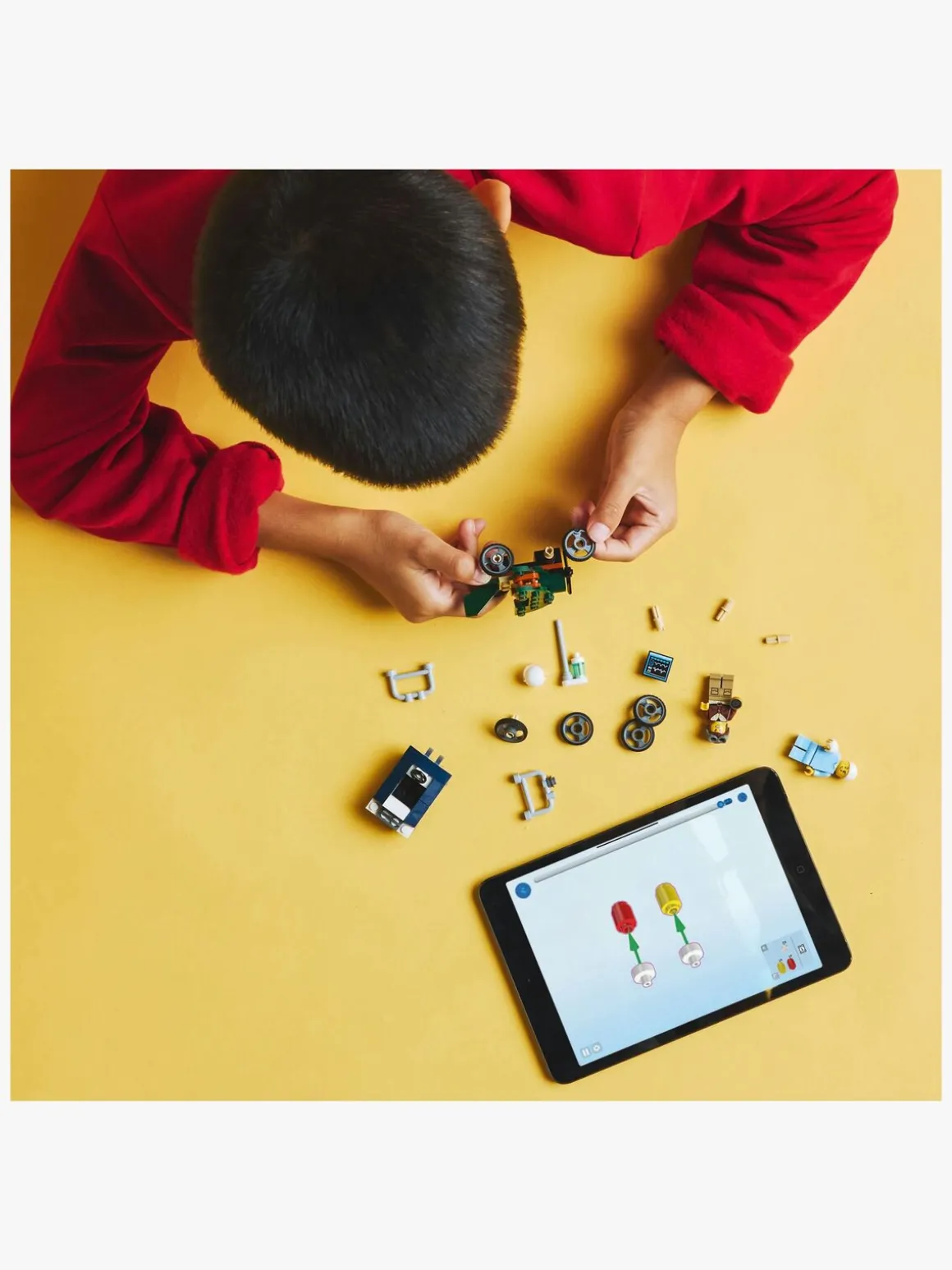 LEGO racersættet med sæbekassebiler indeholder trykt trinvis byggevejledning. Børn kan også nyde et sjovt byggeeventyr i LEGO Builder appen, hvor de kan zoome ind på og dreje modellerne i 3D, mens de bygger, holde styr på, hvor langt de er kommet, og udforske og gemme andre samlesæt.