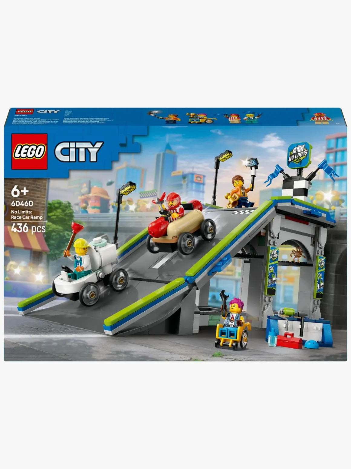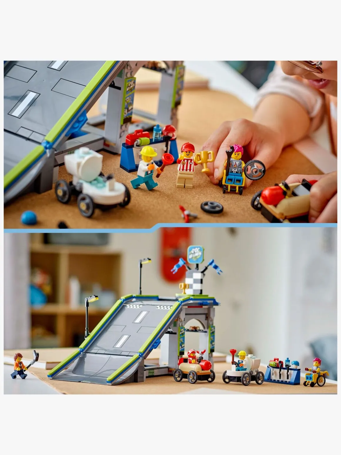 — LEGO City racerlegetøjet Ingen grænser: Racerbilrampe med sæbekassebiler til børn fra 6 år