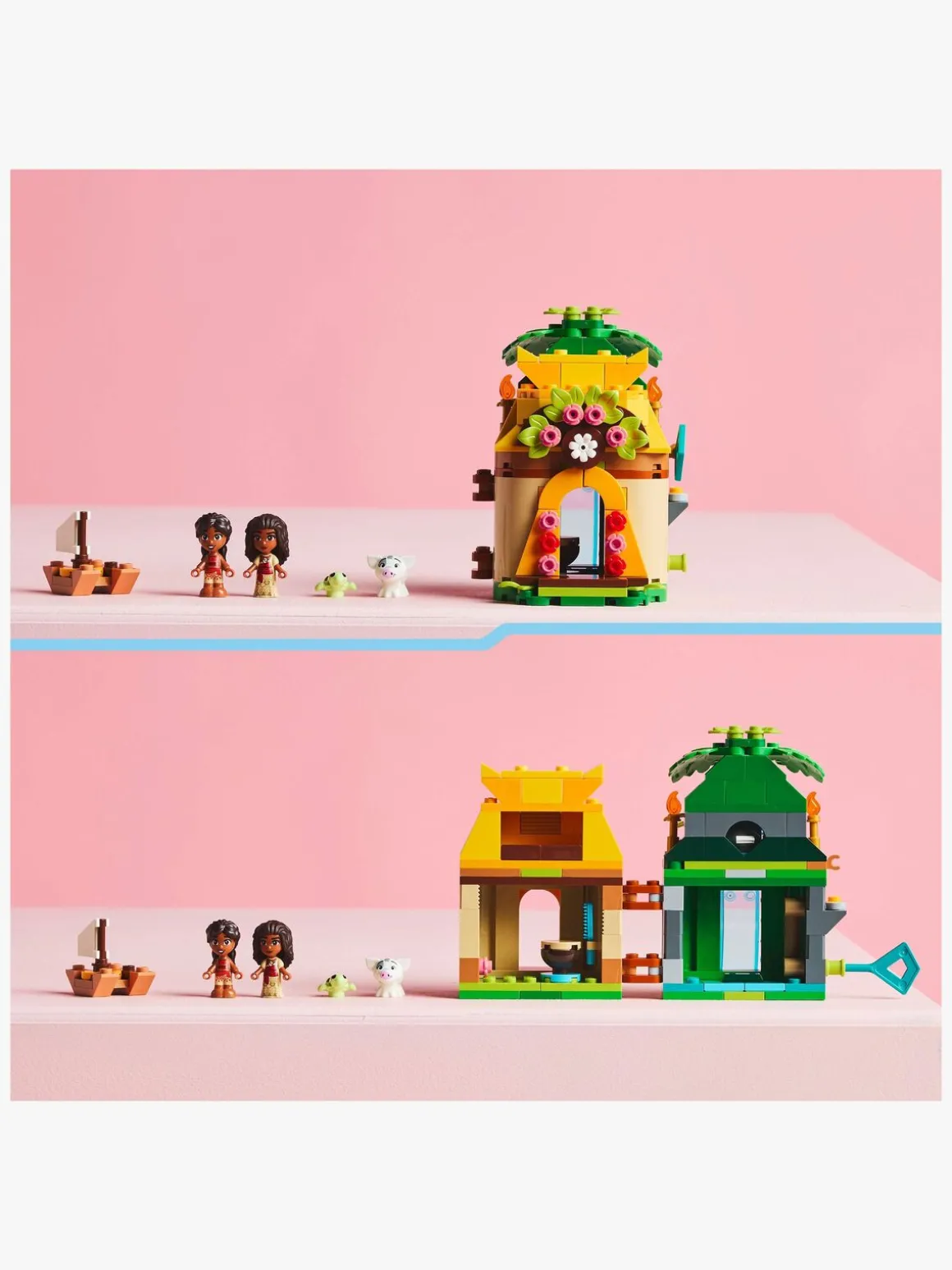 — Dobbeltsidet model og LEGO ǀ Disney figurer af Vaiana, lillesøster Simea og Pua