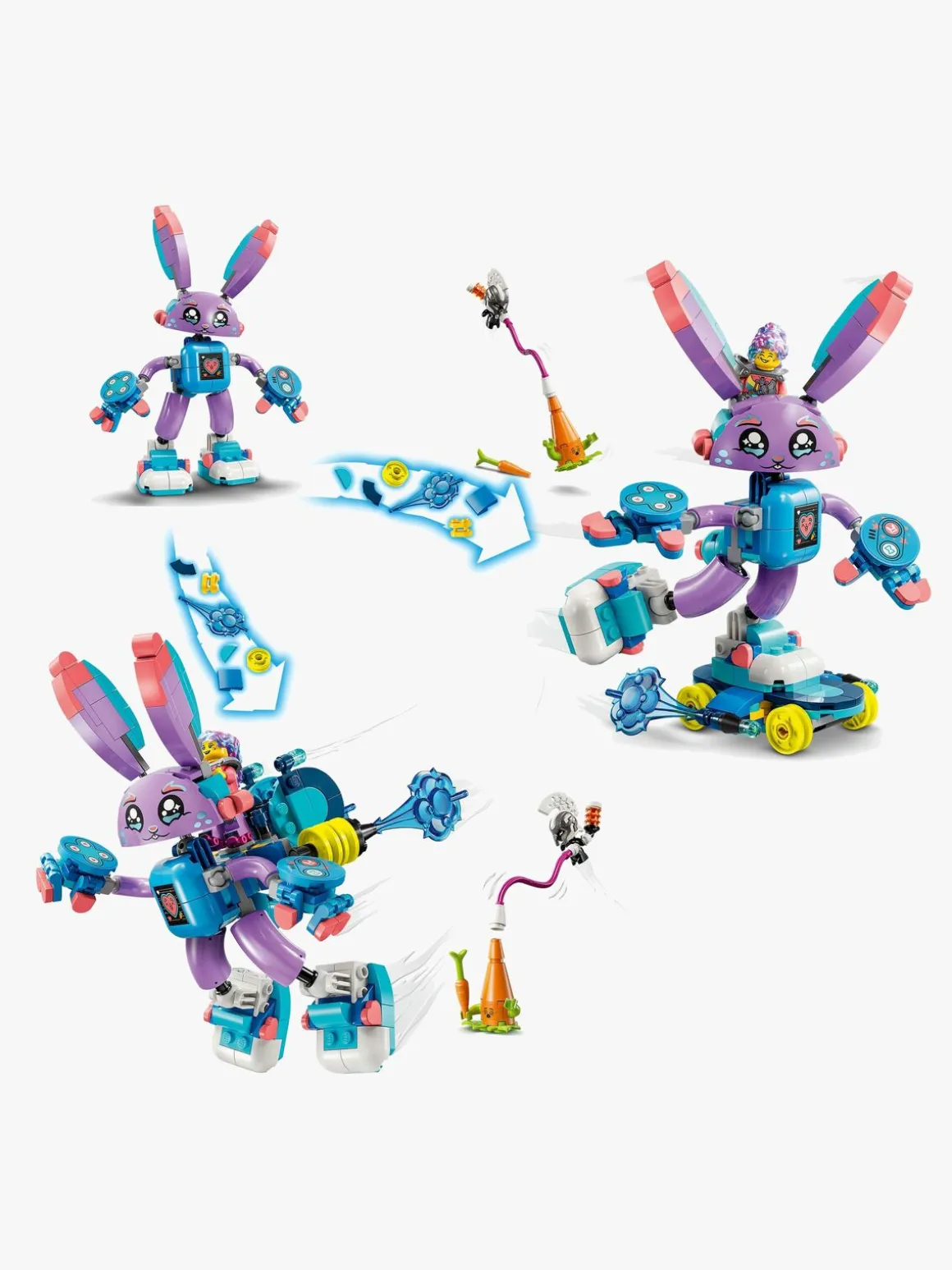 Unge drømmere får det sjovt med at bygge Bunchurro-figuren, en sej ny version af kaninen Bunchu med en videospilskærm på maven og spilcontrollere som handsker og sko. Og når de udforsker de 2 ombygningsmuligheder, bliver det endnu sjovere. De kan give kaninmodellen et skateboard og boostere eller en sej jetpack på. Legetøjskaninen er yderst bevægelig i alle tilstande, og handlingen får liv af en Izzie-minifigur, der kan sættes på ryggen af Bunchurro og giver rig mulighed for fantasifuld rolleleg.