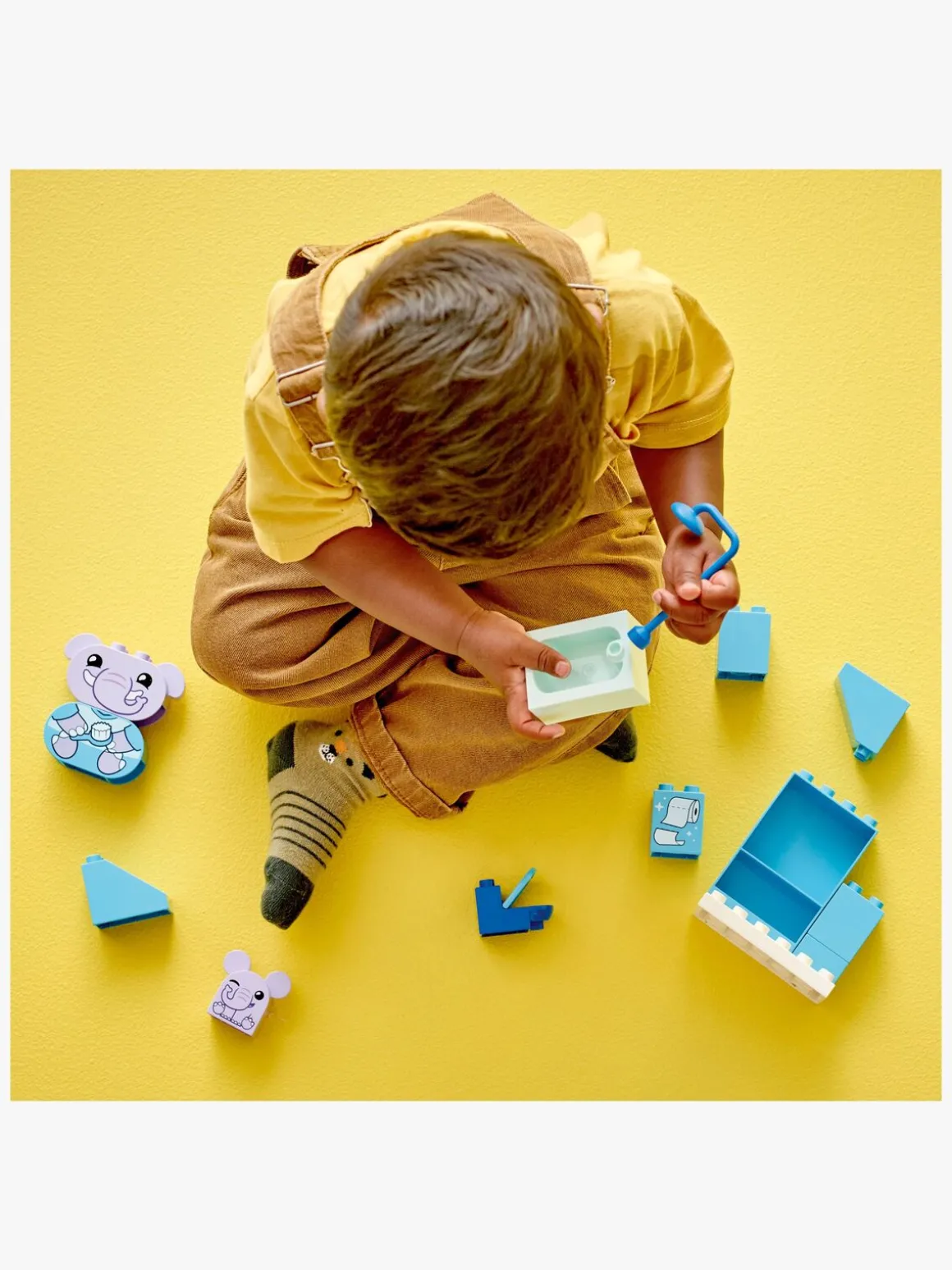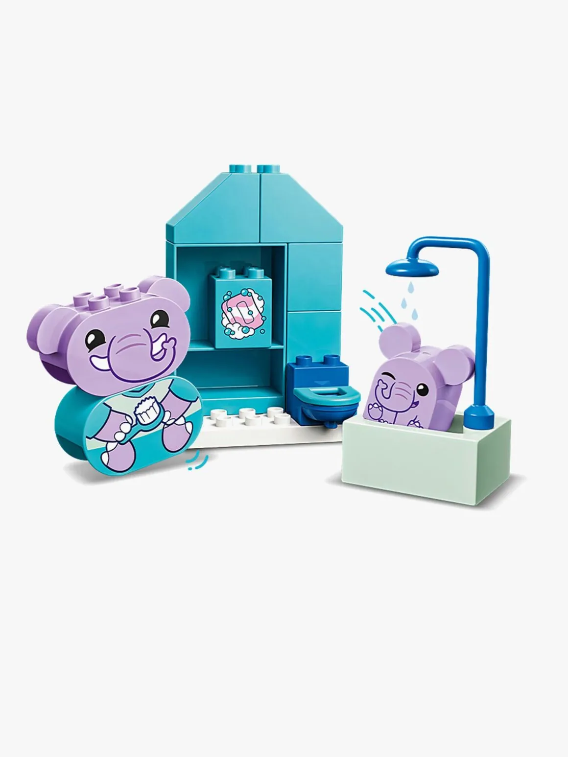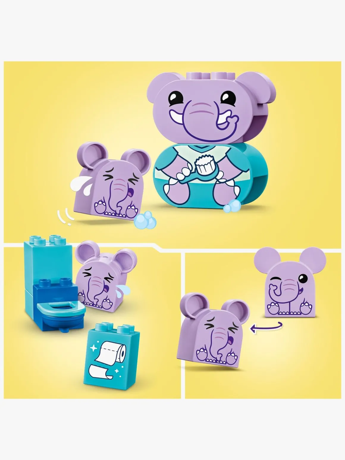 Legetøjet til social og følelsesmæssig udvikling omfatter en figur af en elefantunge, der har enten et glad eller trist udtryk, som hjælper små børn med at udspille deres følelser omkring vaskerutiner. Legesættet med badetema er også en fantastisk måde at sætte gang i sjove samtaler med de mindste omkring pottetræning på.