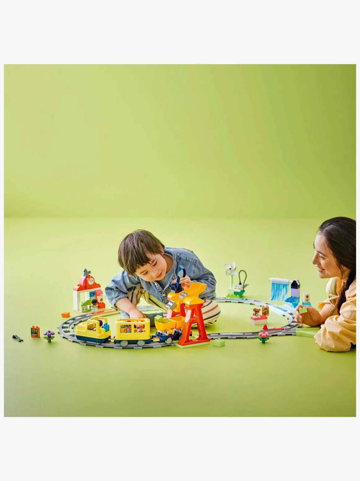 Med den gratis LEGO DUPLO app Interactive Trains kan de mindste optage deres egne lyde til togets rejse og køre lokomotivet ved hjælp af en bærbar elektronisk enhed, og familien kan finde inspiration til alternative modeller.