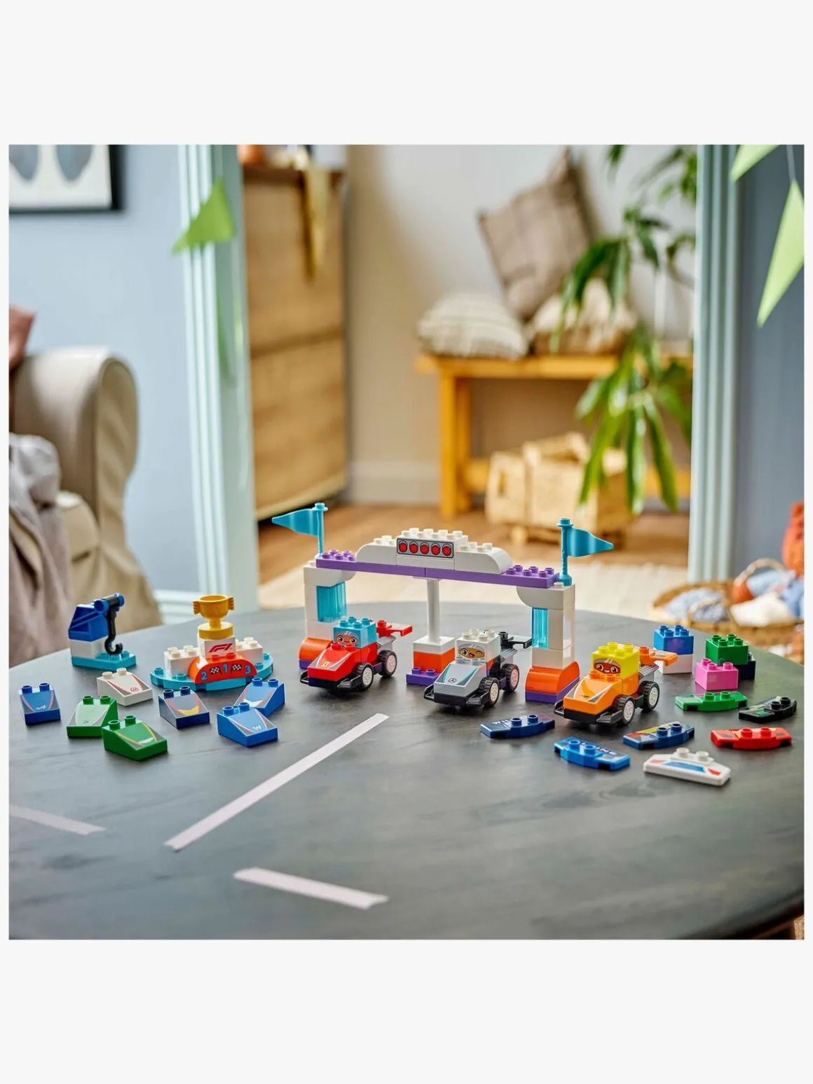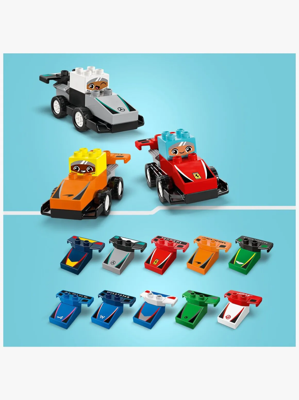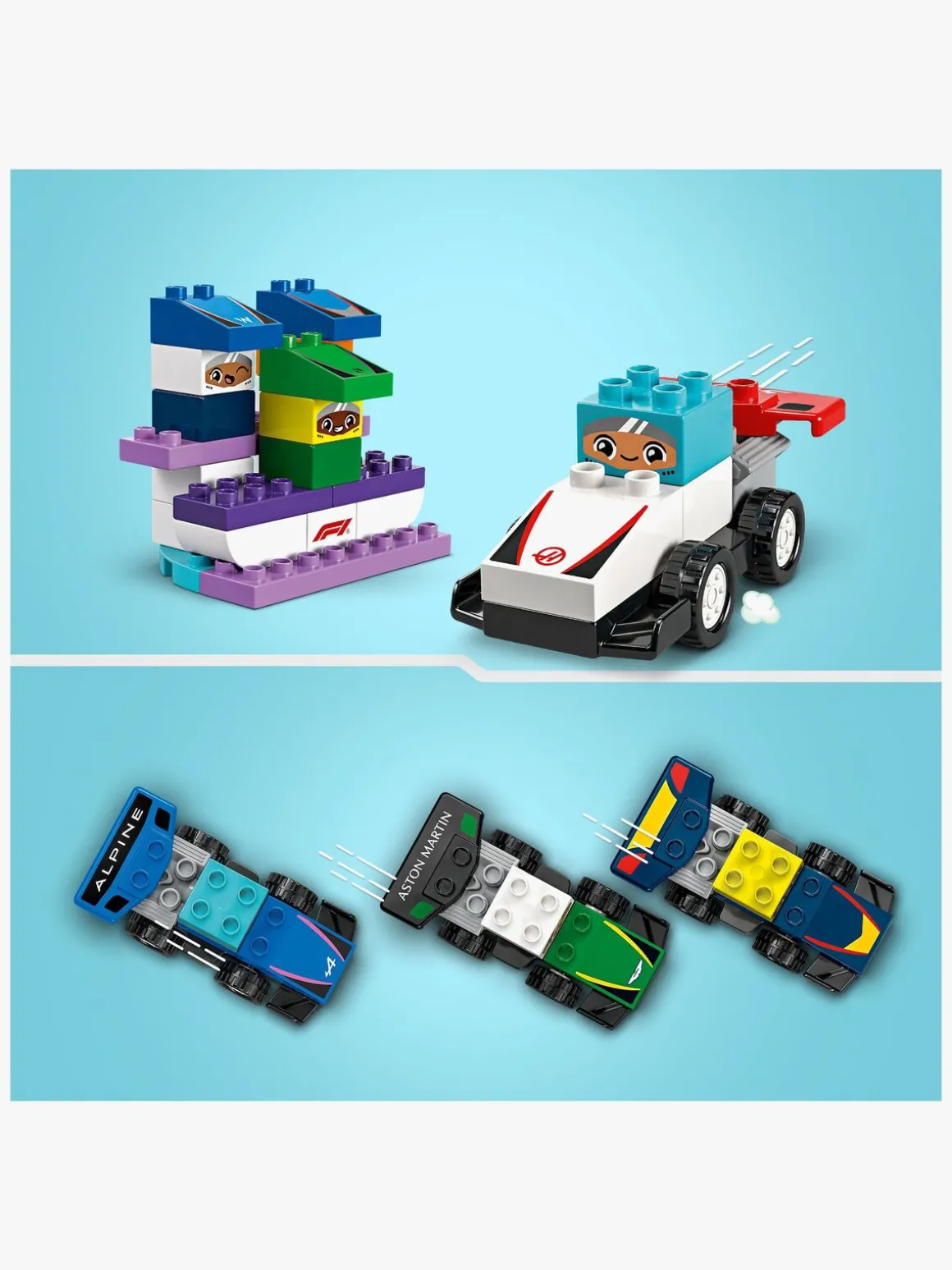 Det fantasifulde legetøj til små børn er fyldt med igangsættere, så I begge kan komme hurtigt ud af starthullerne til den sjove leg. Sammen kan I bygge genkendelige F1-funktioner, såsom startlamperne og podiet. Alle 10 hold er repræsenteret, så tumlinger er i førersædet, når de tilpasser deres biler og vælger, hvem der vinder løbet og løfter pokalen.