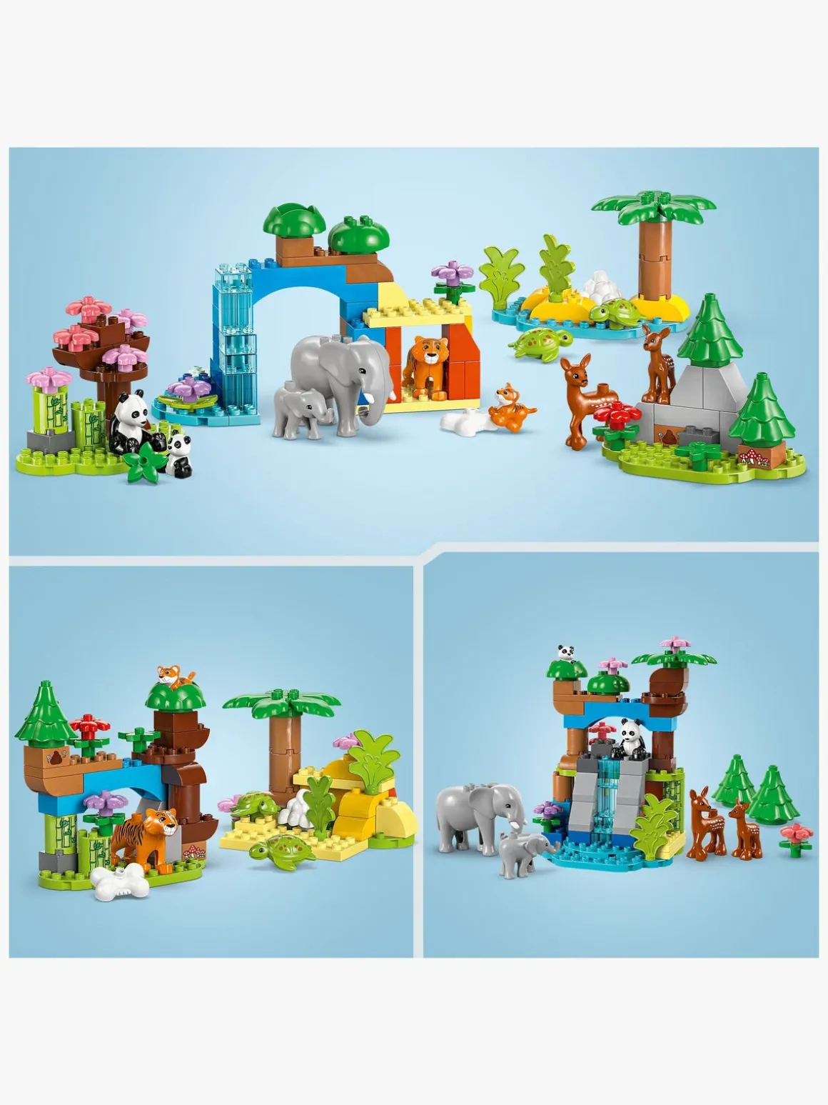 Små børn, der elsker legetøj med naturtema, kan styrke en række færdigheder. Med sorteringslegetøjet kan de matche og sammenligne de voksne dyr og ungerne og bestemme, hvilken mad hvert dyr spiser. De kan bruge deres kreativitet til at ombygge LEGO DUPLO 3-i-1-sættet på ubegrænsede måder og bruge fantasien til at passe legetøjsdyrene.