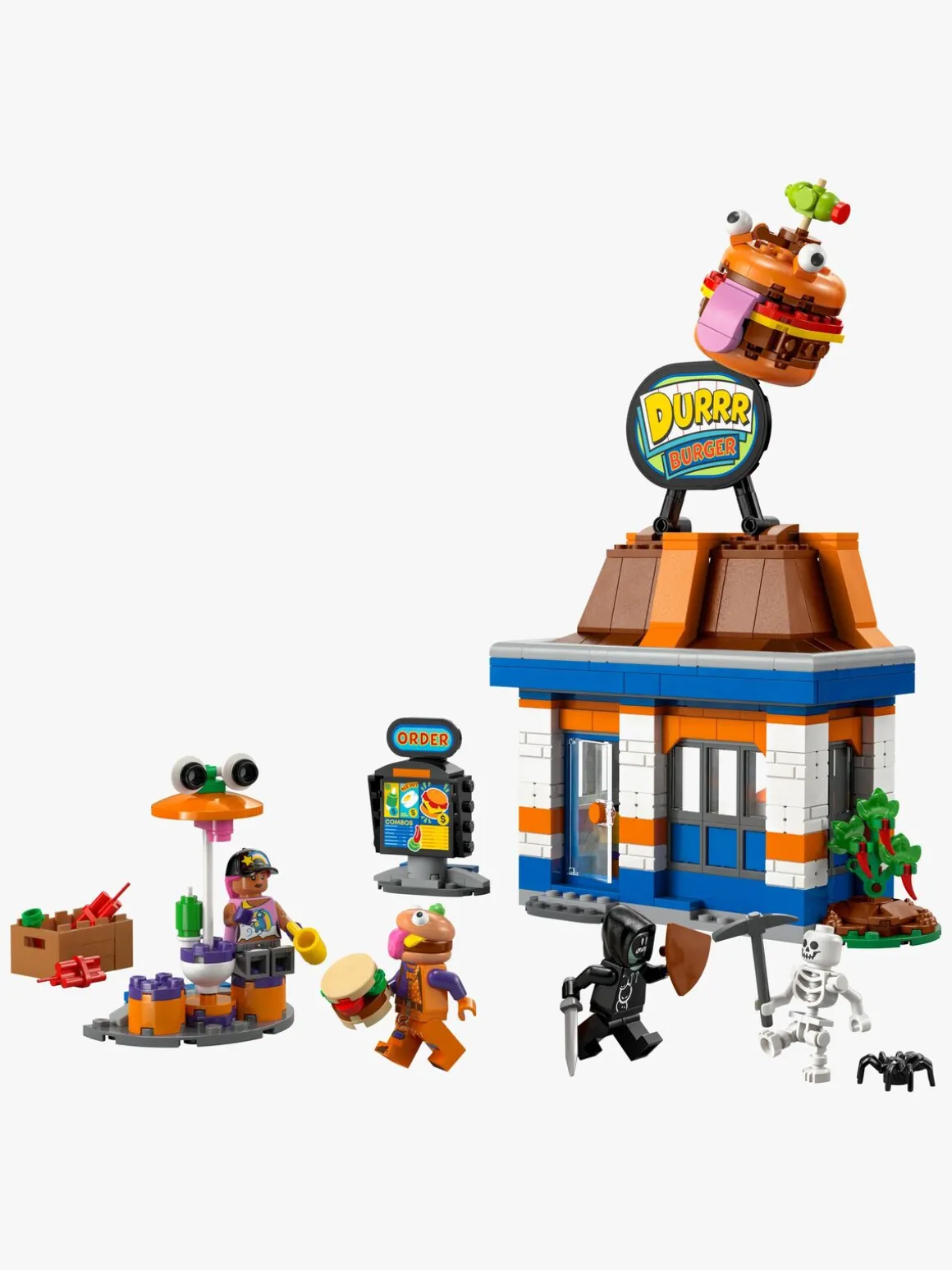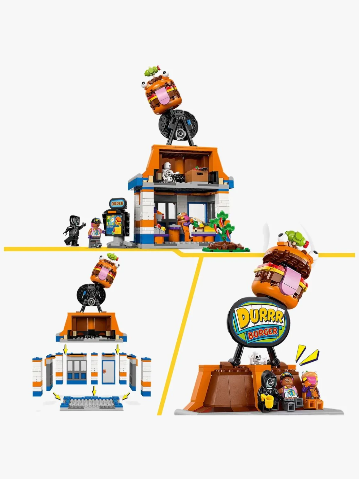 Gamere vil få det sjovt med at samle modellen af Durrr Burger-restauranten, som er modulopbygget og inspirerer til tilpasning, før de udforsker de lækre og sjove detaljer. Indenfor er der en dipstation, en sodavandsmaskine og et kasseapparat, og udenfor er der et siddeområde med en kop og et spejlæg. Der er også et aftageligt loft med en edderkoppefigur og plads til andet tilbehør, bl.a. en skovl og dynamit. Minifigurer af Beach Bomber, Beef Boss, Grimey og et skelet gør handlingen levende og inspirerer til fantasifuld rolleleg.