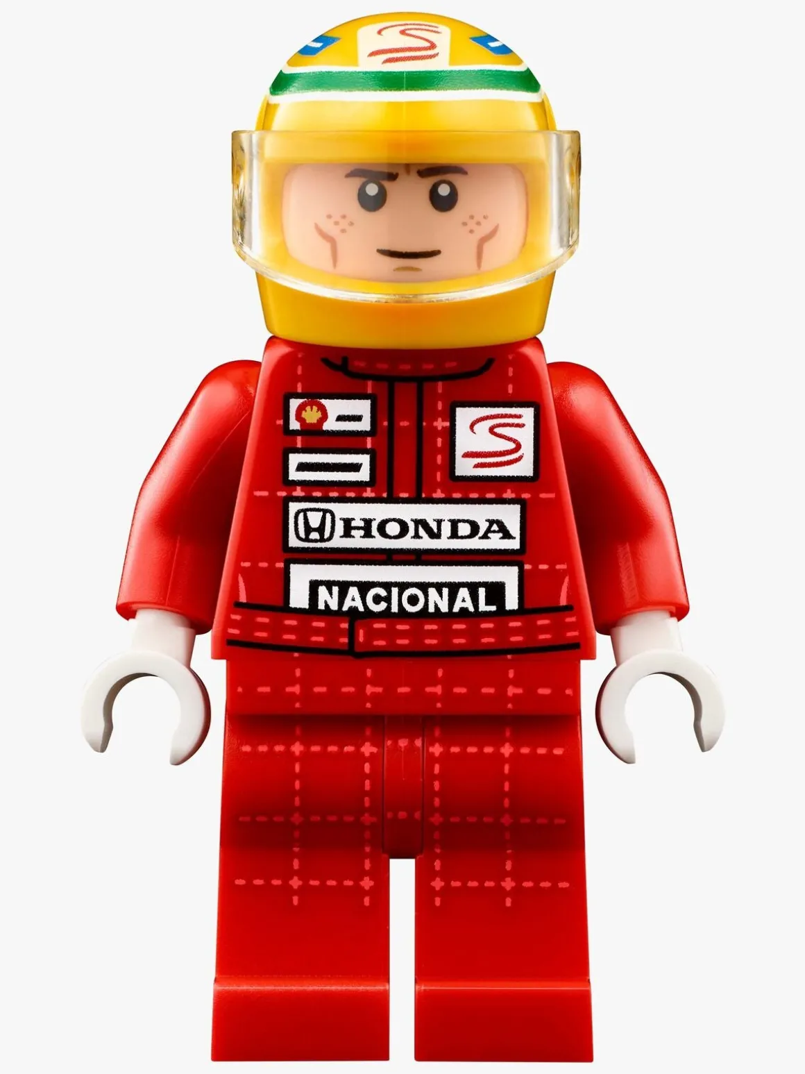 — Indeholder separate udstillingsstande til racerbilen og minifiguren af Ayrton Senna