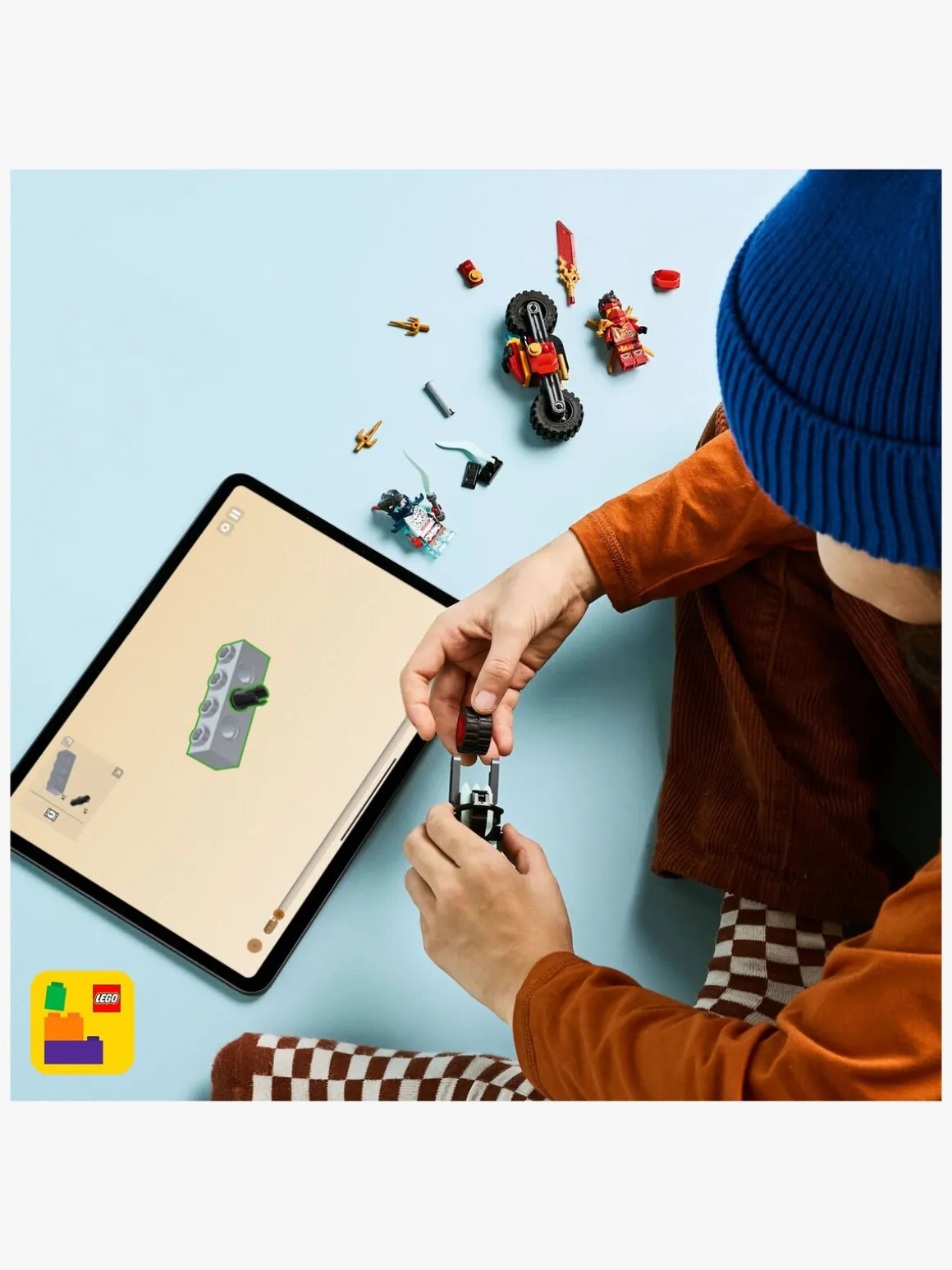 — LEGO sættet med 79 elementer omfatter Kais ninja-motorcykel, som er over 9 cm lang