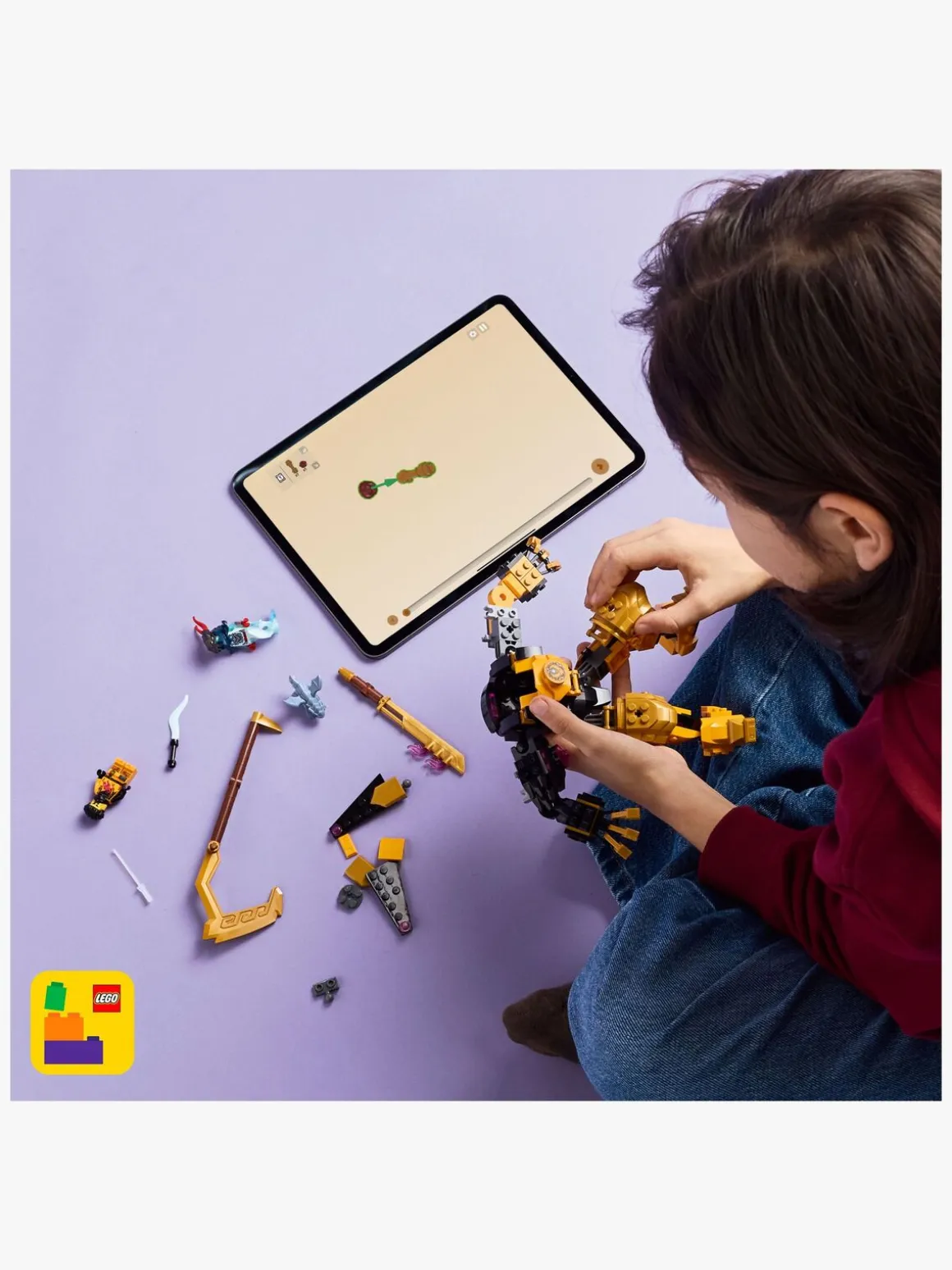 Børn kan også skabe deres egen ultimative mech-robot ved at bytte kropsdele fra Arins Spinjitzu-kamprobot ud med dele fra andre tilpasningsegnede mechs i NINJAGO-sortimentet fra 2024 sælges separat: Coles jord-elementrobot 71806, Soras tech-elementrobot 71807, Kais ild-elementrobot 71808 og Lloyds elementkraftrobot 71817.