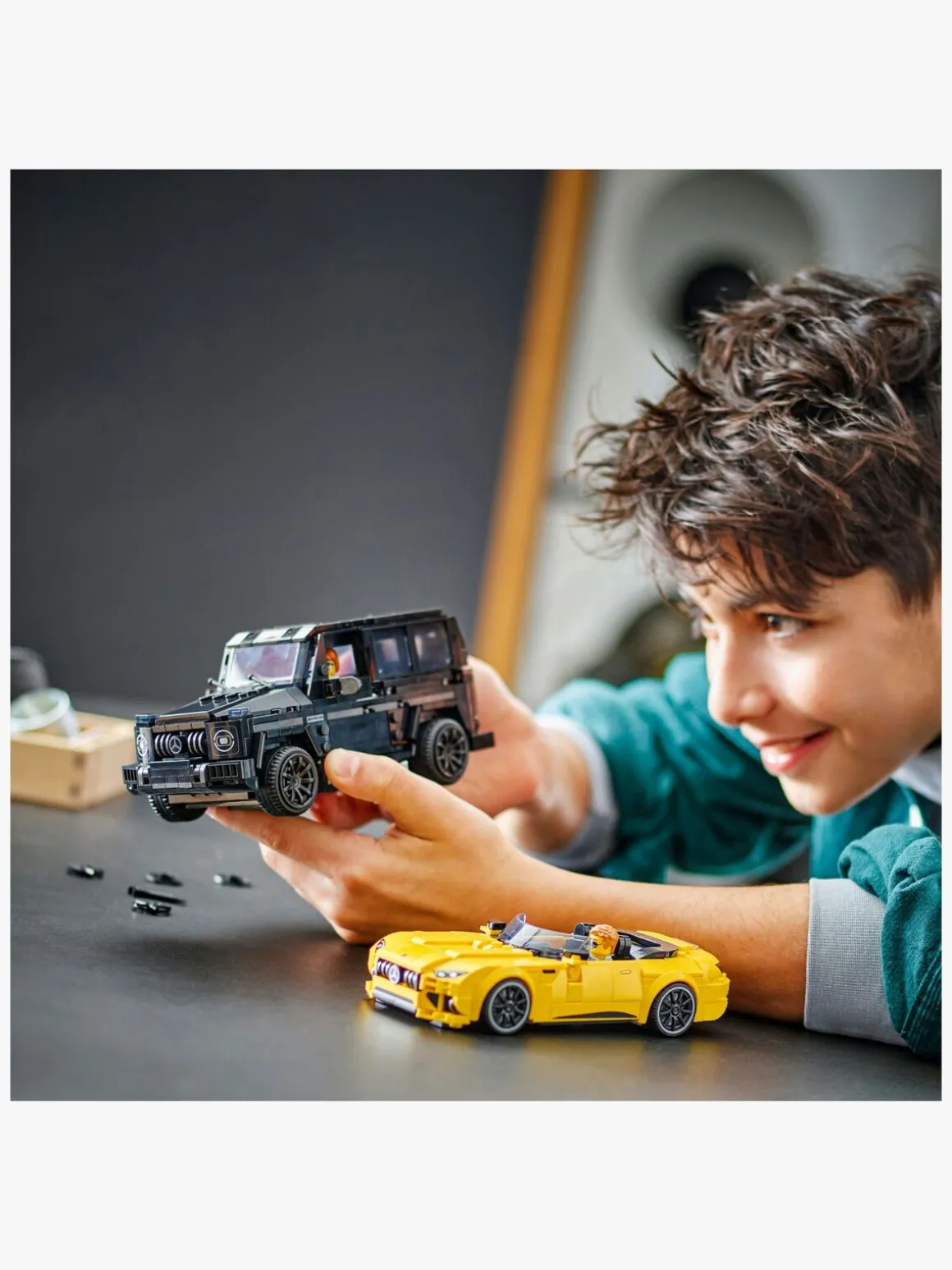 Modellerne af den sorte G-klasse Mercedes-AMG G 63 og den gule roadster-cabriolet Mercedes-AMG SL 63 rummer begge autentiske designdetaljer fra de virkelige versioner, bl.a. kølergitre, motorhjelme og indvendige træk. Hver Mercedes-AMG omfatter også en minifigur af en kører, som børn kan sætte bag rattet og nyde racerløb på banen med.