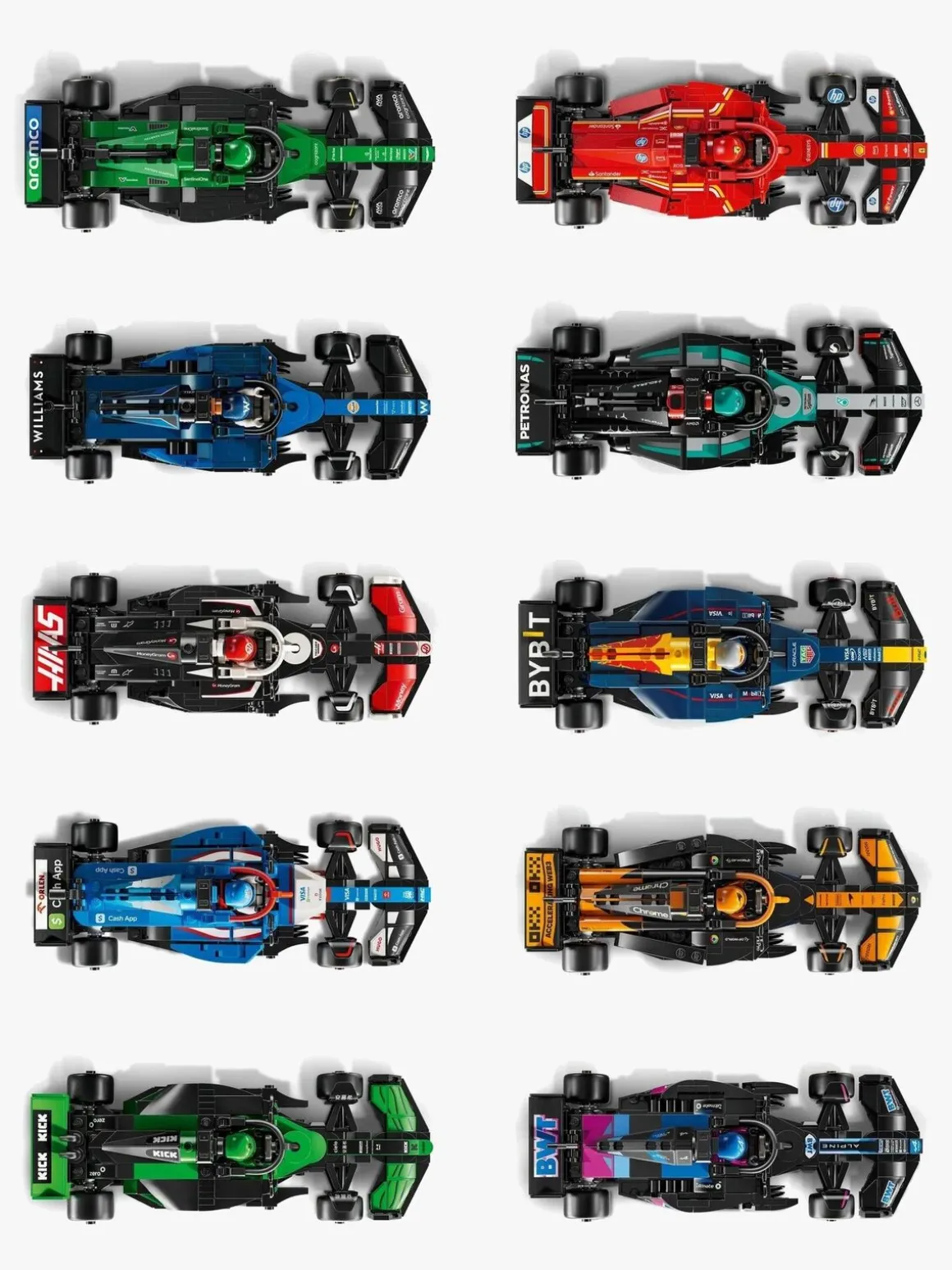 – Minifigurer af F1-kørere, der kan placeres i cockpittet.