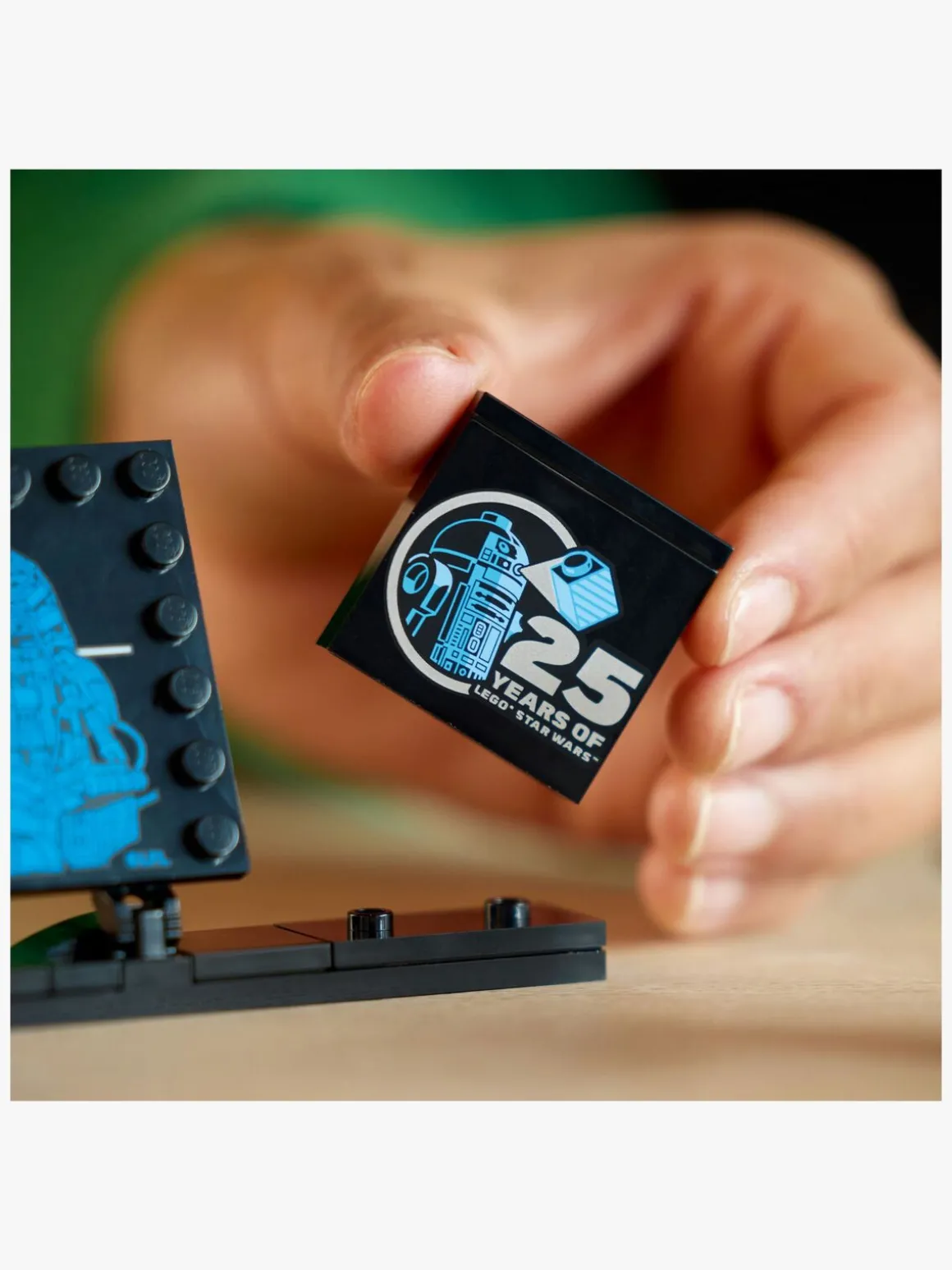 Som prikken over i’et på en iøjnefaldende udstillingsgenstand har det kreative byggesæt også en stand med en faktaplade, en LEGO Star Wars 25-års jubilæumsklods og plads til den medfølgende lille LEGO figur af en droideka.