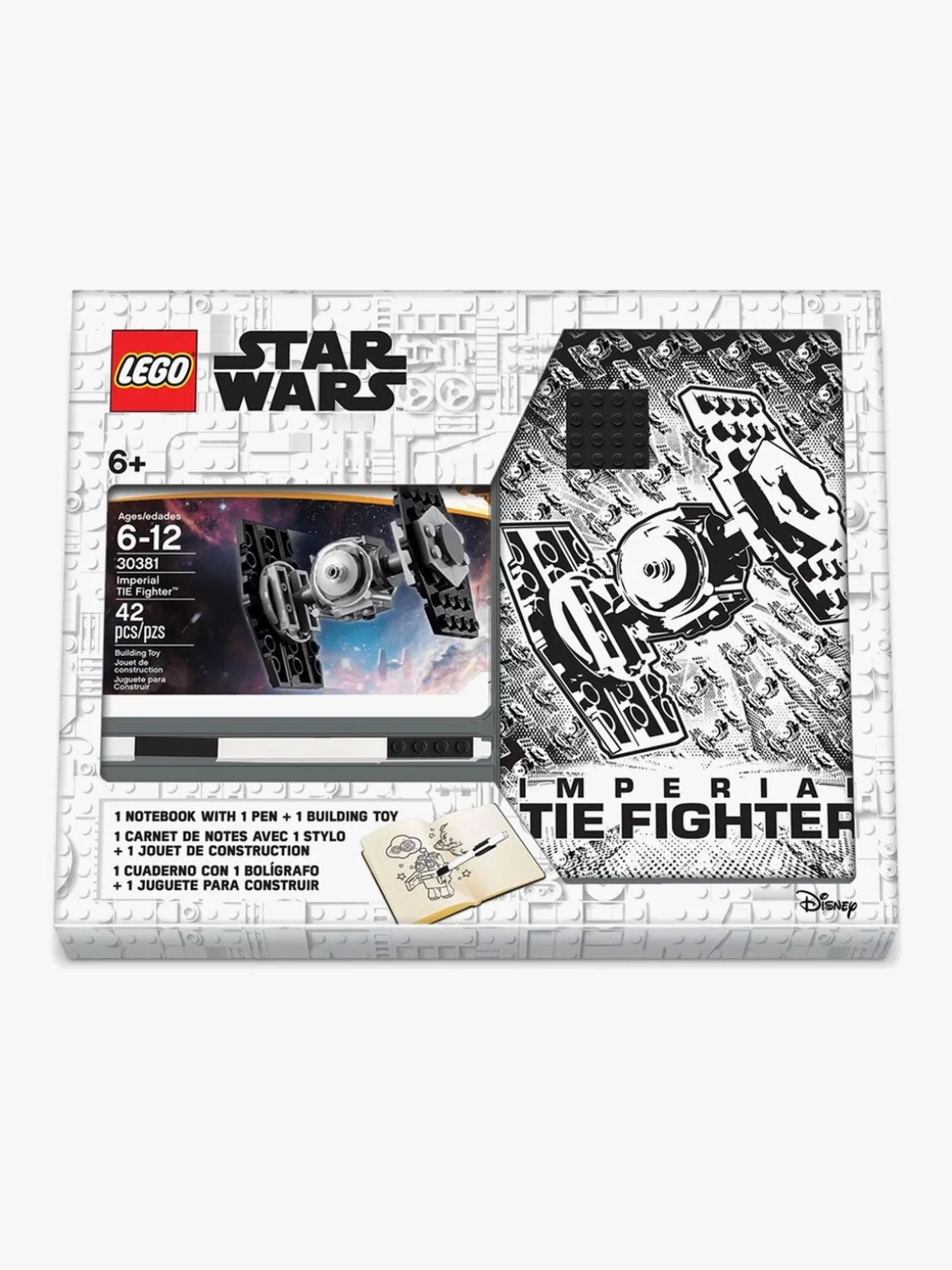 – Indeholder: en notesbog, en kuglepen og et Star Wars Tie Fighter byggesæt.