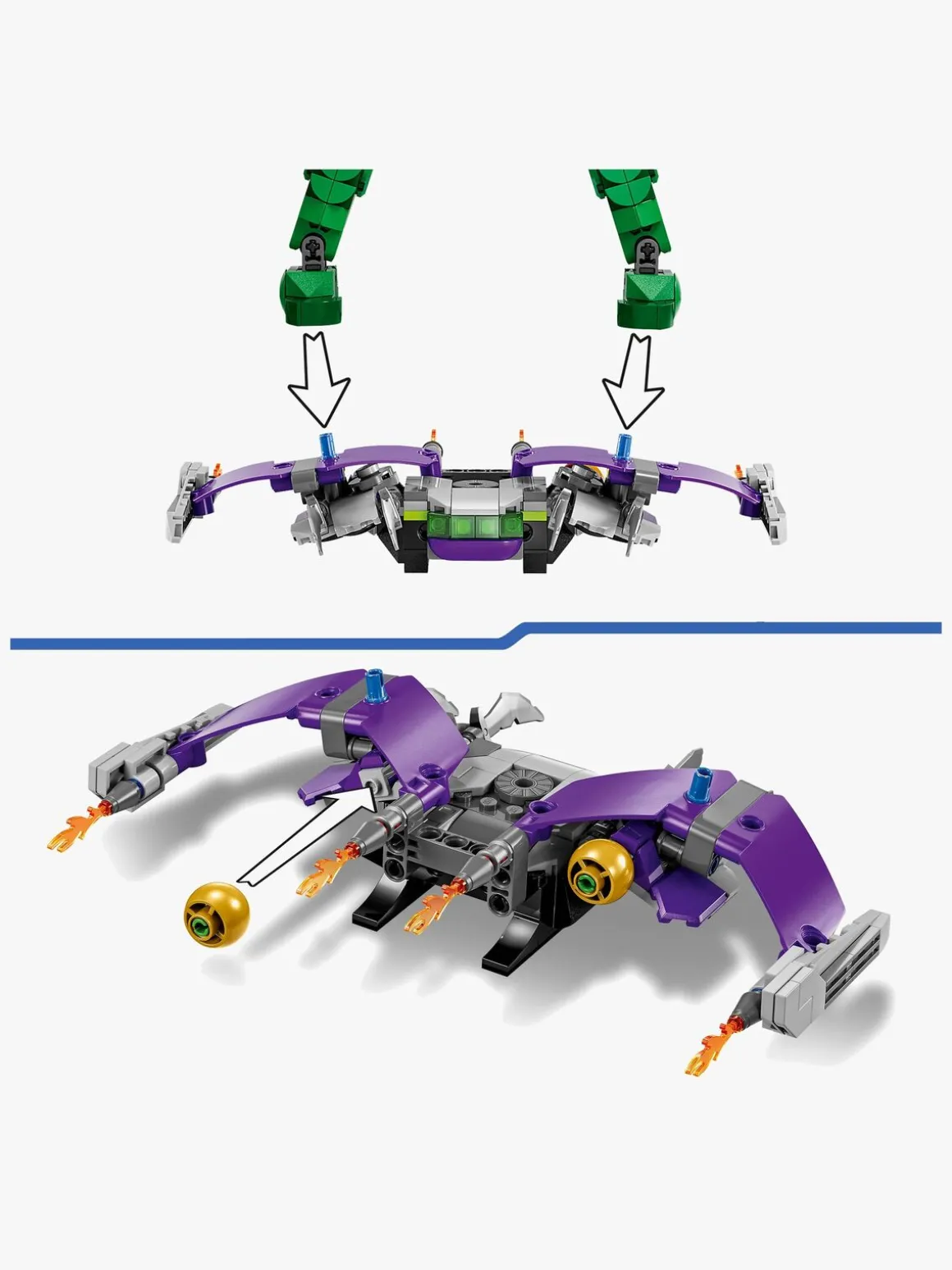 Dette samlerobjekt og byggelegetøj med en Marvel-skurk er sjovt for unge superhelte at bygge, lege med og udstille. Takket være bevægelige skulder-, arm-, hofte- og benled kan børn sætte figuren i seje actionstillinger, når de drager ud på spændende missioner. Den autentisk detaljerede Green Goblin omfatter 2 græskarbomber og hans berømte glider. Bomberne passer i karakterens hånd og i opbevaringsrummet bag på glideren. Et ideelt sæt til selvstændig rolleleg. I den sjove, intuitive LEGO Builder app kan byggere få ekstra digitalt sjov ved at zoome ind på og dreje sæt i 3D samt holde styr på, hvor langt de er kommet.