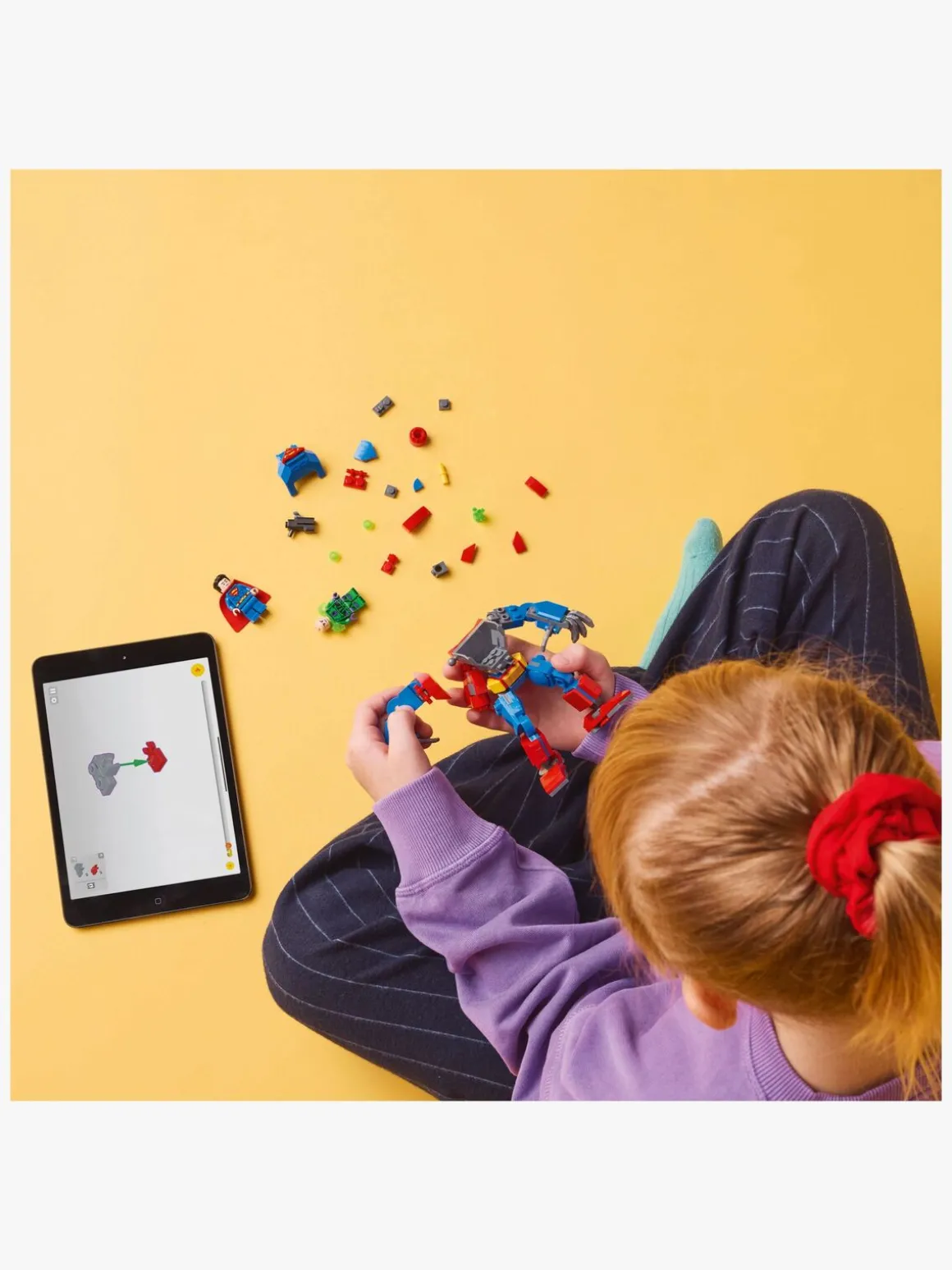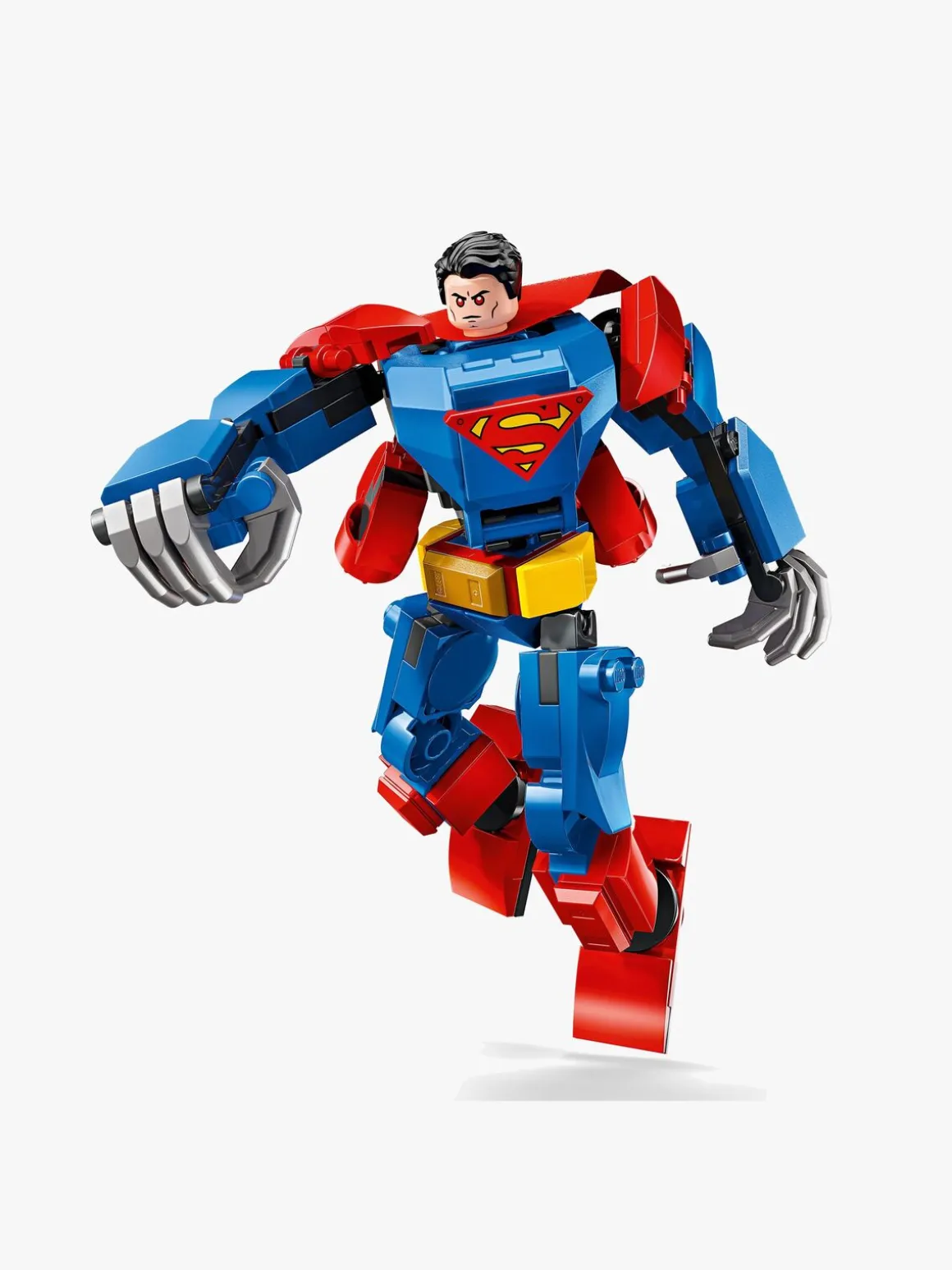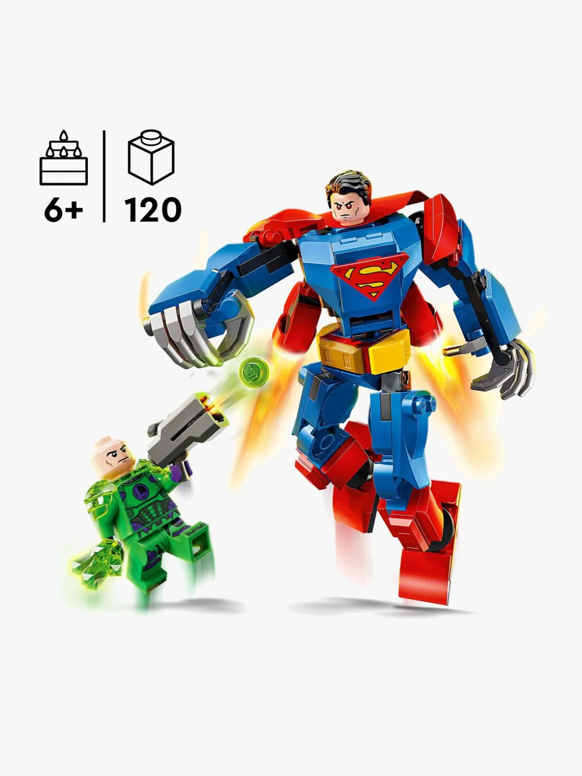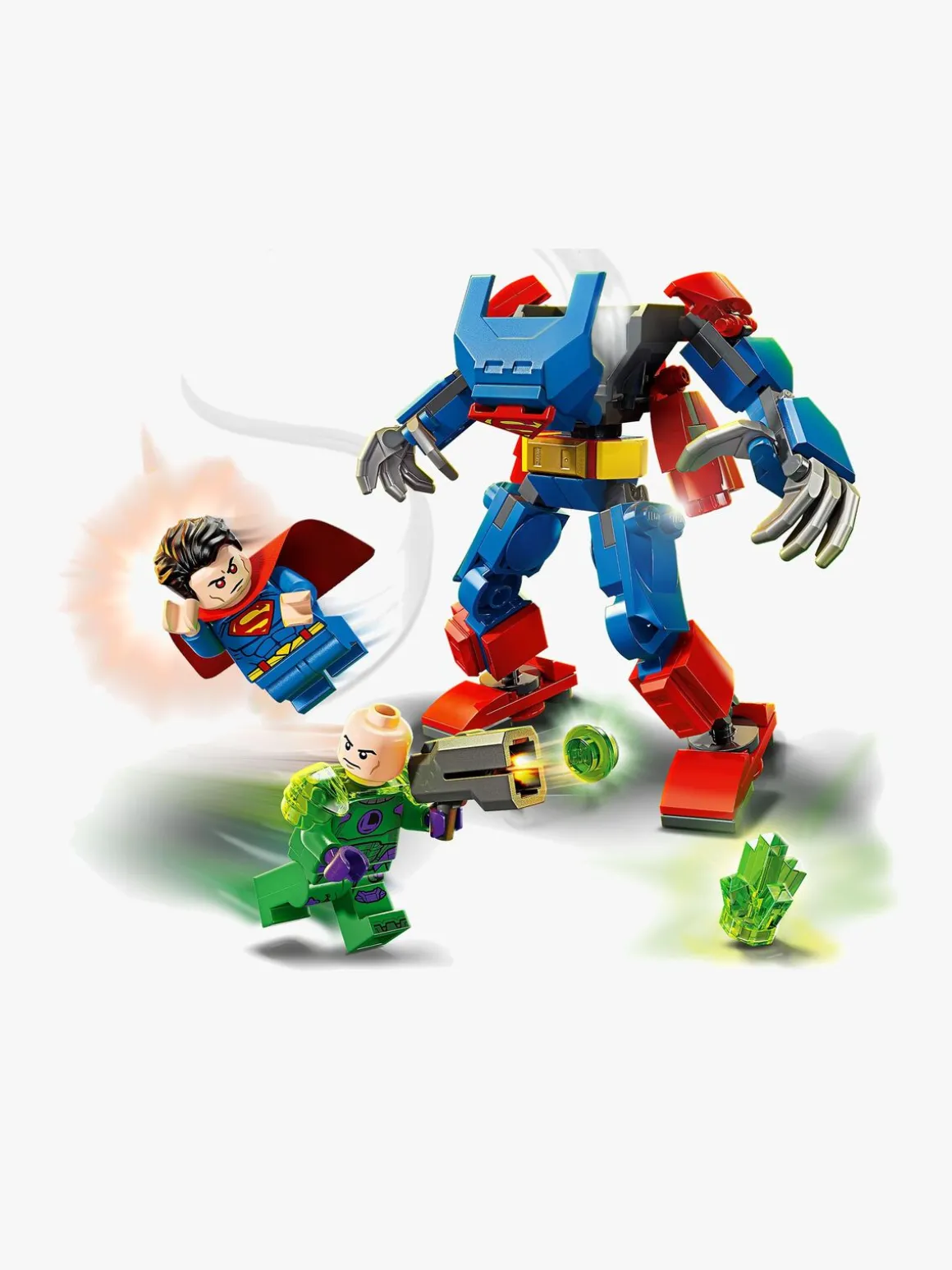 Dette LEGO DC Superman-legesæt indeholder 2 minifigurer: Superman med stofkappe og drejeligt hoved, der viser alternative udtryk, og Lex Luthor med en knopskyder og en kryptonit-krystal. Byggemodellen af en mech-robot har bevægelige arme, ben og fingre. Overkroppen kan åbnes og afslører et cockpit, hvor minifiguren af Superman kan sidde. På kamprobottens bagside er der 2 justerbare rakeotorer, så mech’en kan “flyve”. For at få endnu mere digitalt sjov kan byggere zoome ind på og dreje modeller i 3D samt holde styr på, hvor langt de er kommet, med den sjove, intuitive LEGO Builder app.