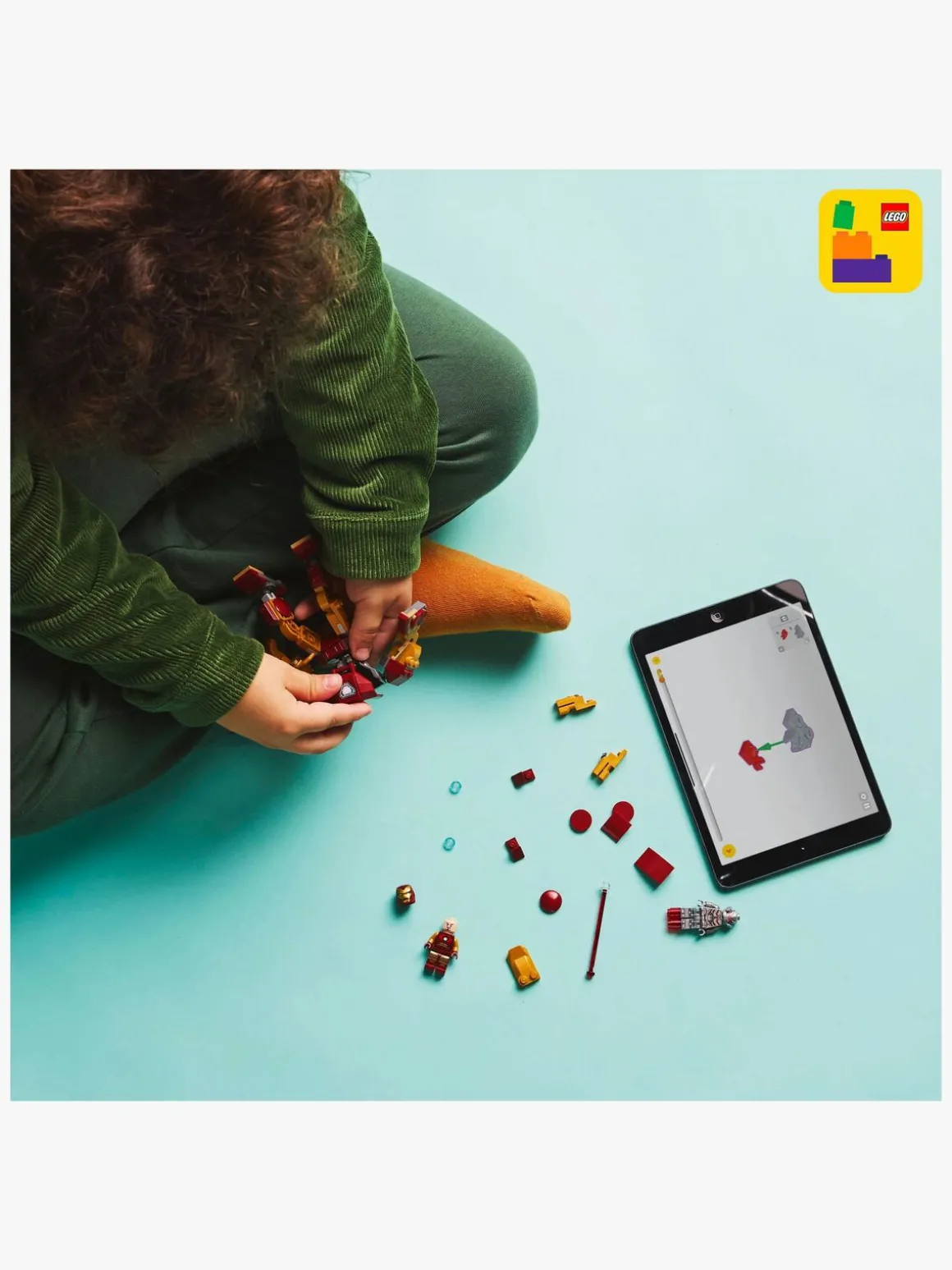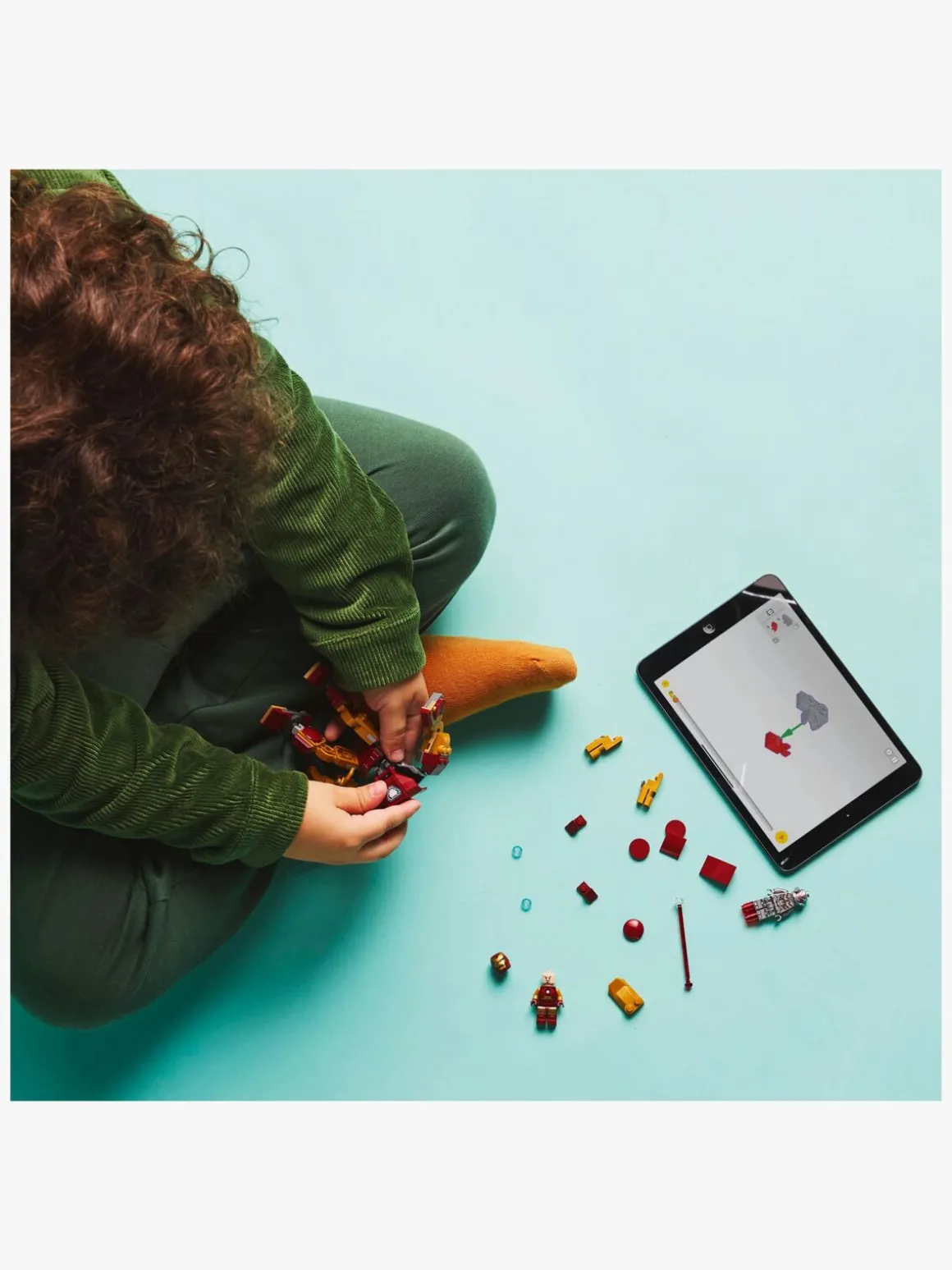 LEGO Marvel legesættet med en kamprobot indeholder 2 minifigurer: Iron Man med hjelm, der kan åbnes, samt drejeligt hoved, der viser alternative udtryk, og Ultron, der holder et laserstråle-element. Mech-robotten kan bygges og har bevægelige arme, ben og fingre og en knopskyder for enden af højre arm. Overkroppen kan åbnes og afslører et cockpit, hvor minifiguren af Iron Man kan sidde. For at få endnu mere digitalt sjov kan byggere zoome ind på og dreje modeller i 3D samt holde styr på, hvor langt de er kommet, med den sjove, intuitive LEGO Builder app.