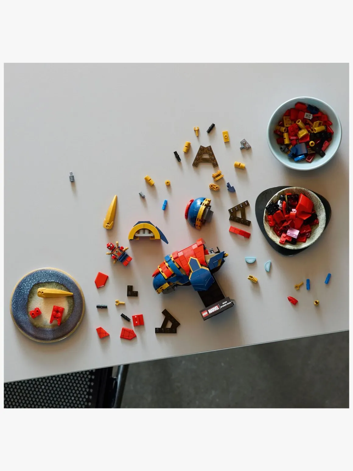 Det ikoniske byggesæt omfatter et drejeligt hoved og 2 bevægelige mekaniske arme. Der medfølger 2 udskiftelige baser med en navneplade: en med plads til en aftagelig minifigur af Iron Spider-Man og en uden. Det tilfredsstillende byggeprojekt suppleres af en digital version af byg-selv-sættets byggevejledning, som kan findes i LEGO Builder appen.