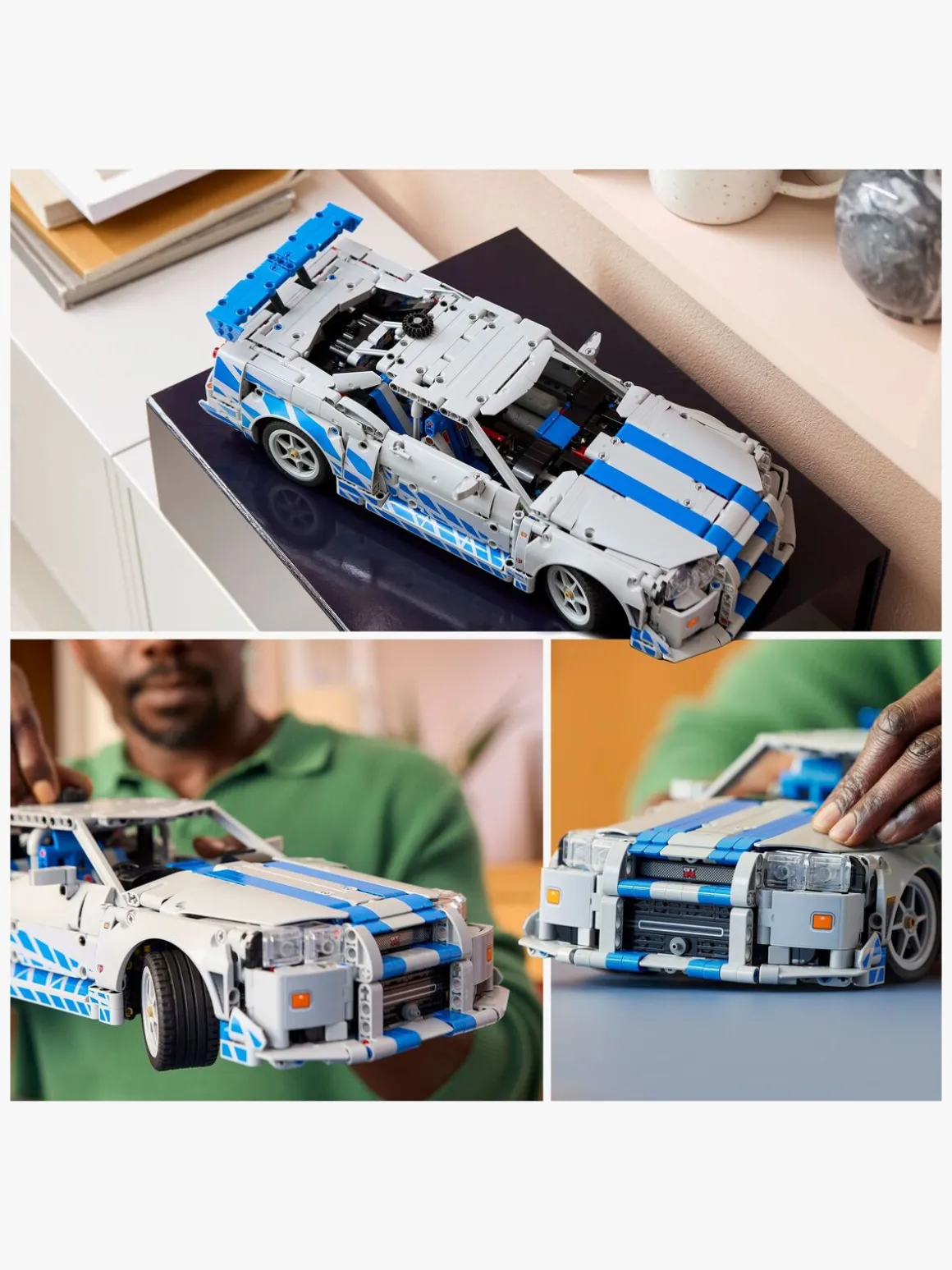 Saml modelbilens autentiske detaljer såsom styringen og affjedring for og bag. Åbn motorhjelmen for at undersøge den 6-cylindrede motor med bevægelige stempler. Juster spoileren, og prøv den første LEGO Technic drifting-funktion nogensinde, som hæver bilen, så du kan genskabe imponerende manøvrer fra dine yndlings-racerscener. Åbn dørene ind til førersædet og de 3 NOS-flasker. Sættet er en iøjnefaldende udstillingsmodel og en fantastisk gave til fans af Fast & Furious-biler.