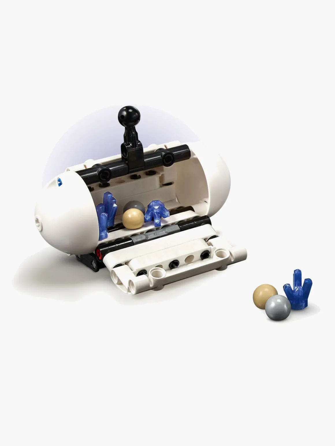 Sættet er en sjov gave til drenge og piger, der er vilde med videnskabssæt og robotlegetøj, eller enhver, der interesserer sig for rumrejser og udforskning af Månen. Indeholder 1.082 elementer.