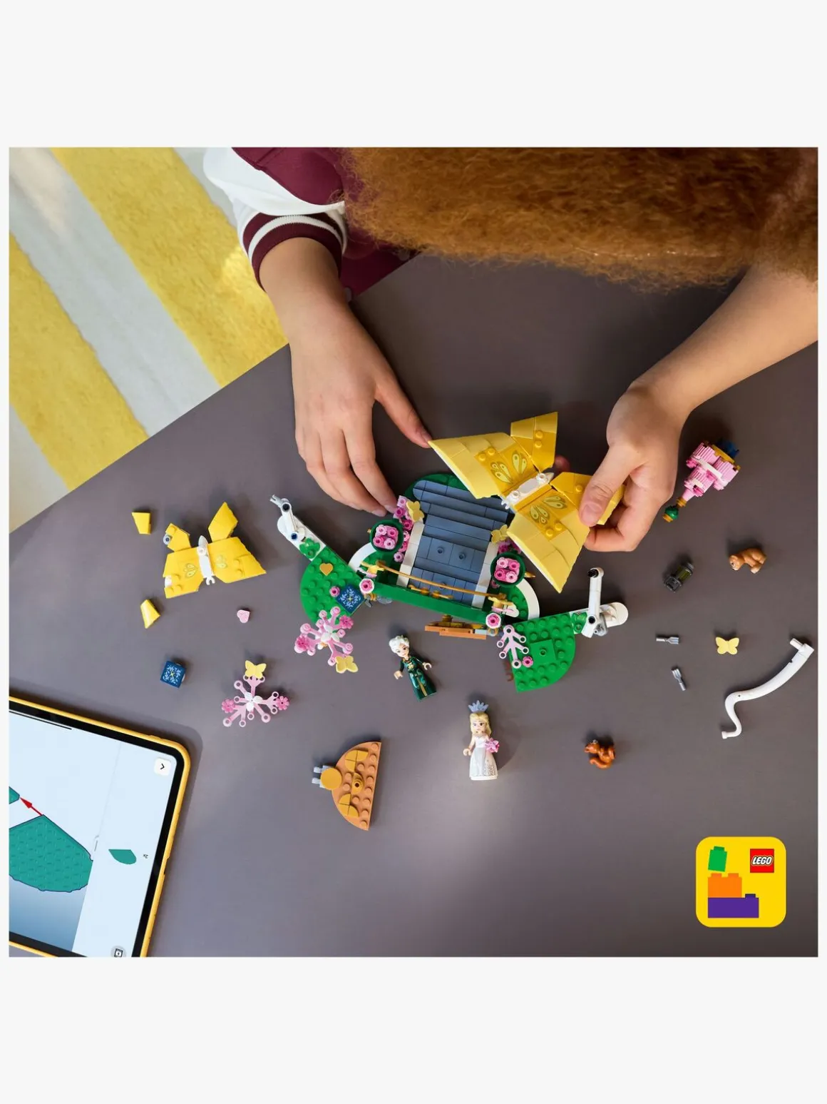 Når legen er slut, kan børn lukke Wicked-gaven ved at trække sommerfuglene sammen, og udstille det iøjnefaldende sæt på værelset. Byggelegetøjet kan bruges sammen med andre LEGO Wicked sæt, så eventyrene fra filmen aldrig slutter. Indeholder 476 elementer.