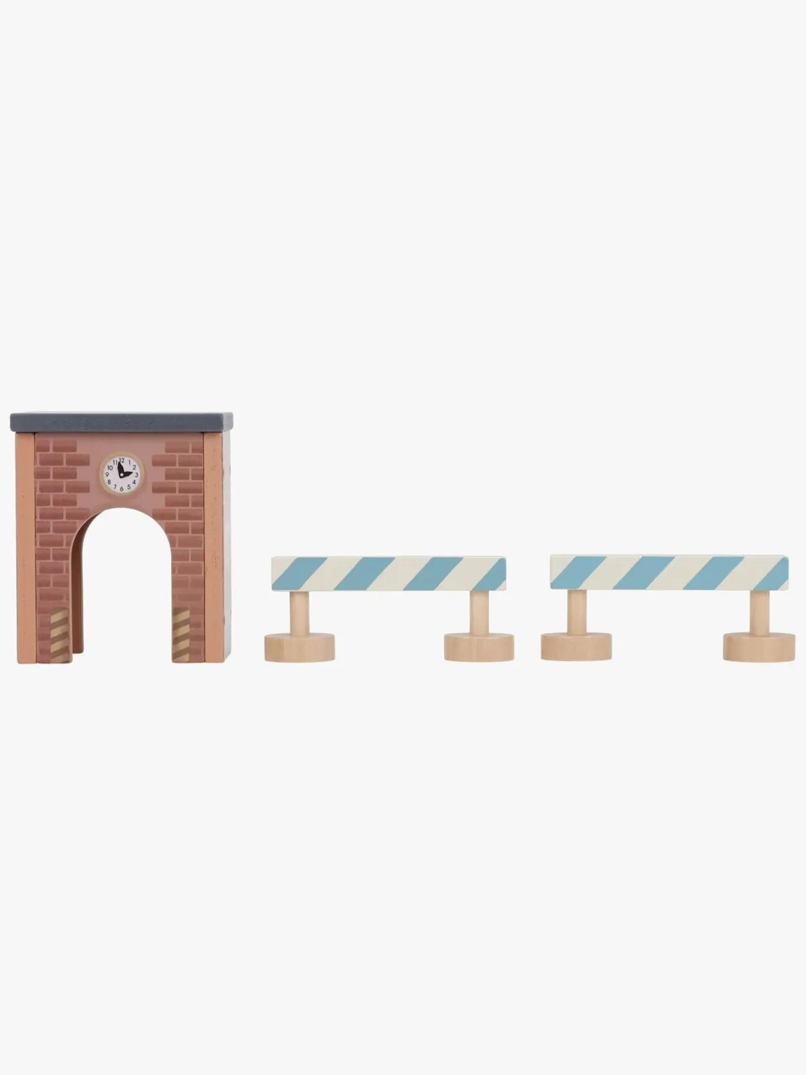 – Indeholder: 1 togbanesæt med en bevægelig kran og en masse sjovt tilbehør.